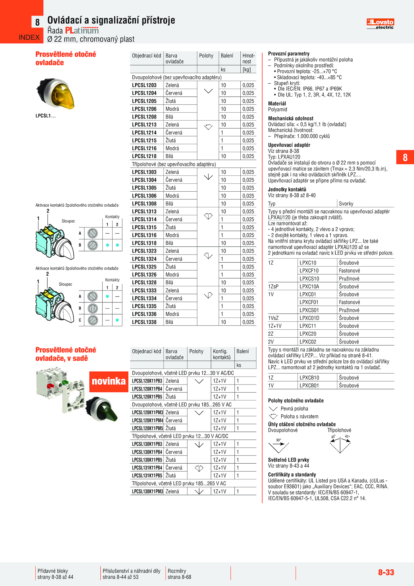 Dvoupolohové, včetně LED prvku 185..
