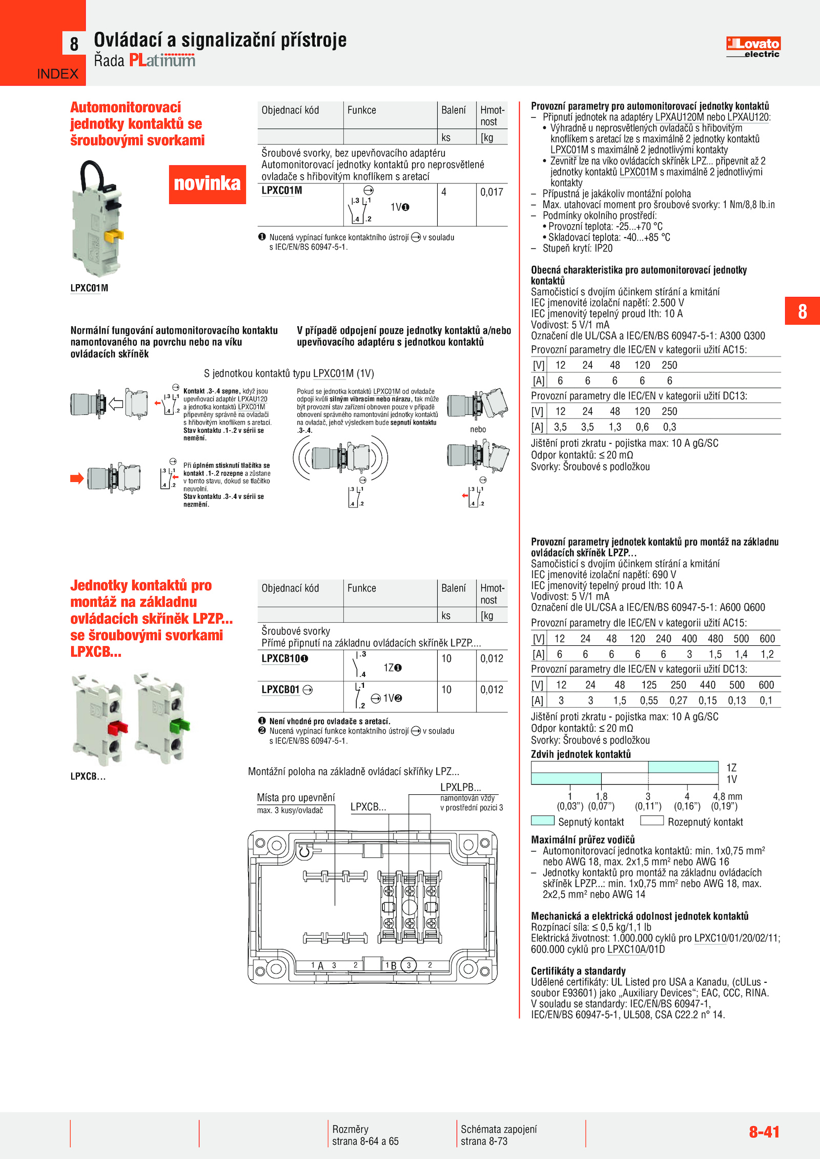 – Jednotky kontaktů pro montáž základnu ovládacích