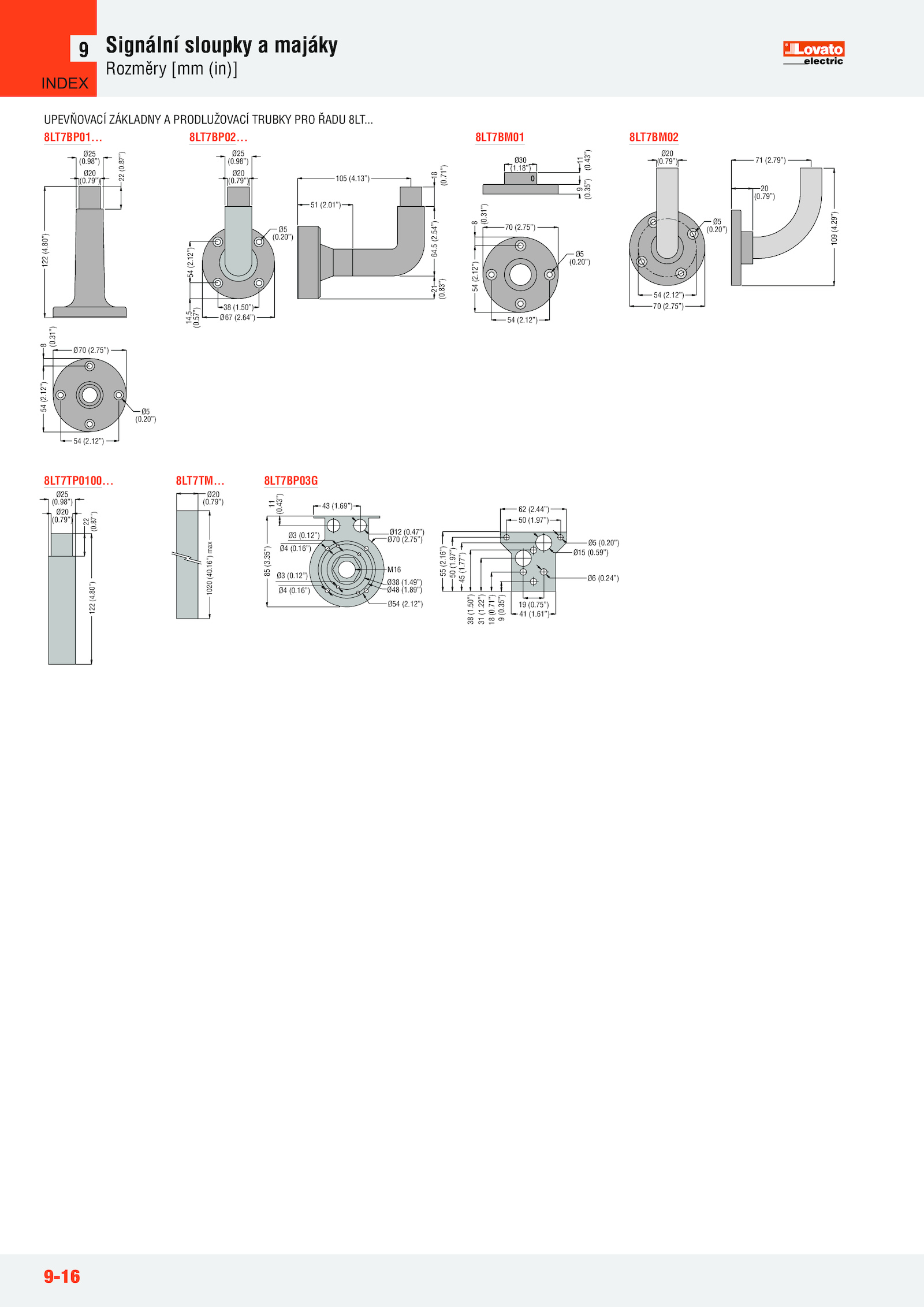 .97”) 45 (1. 122 (4.89”) Ø54 (2.5 (0.54”) 21 (0..50”) 14..71”) Ø25 (0.43”) 55 (2.35”) 11 (0.87”) 8LT7BP03G 60 (2.35”) 11 (0.69”) 50 (1.16”) max Ø20 (0.87”) Ø20 (0.79”) 109 (4.12”) 8LT7BM01 9 (0.12”) Ø5 (0..12”) Ø4 (0.71”) 9 (0.12”) 8LT7BM02 20 (0. Ø70 (2.59”) Ø6 (0.12”) Ø25 (0.44”) 41 (1.61”) 19 (0.12”) 8LT7TP0100.20”) 8 (0.12”) M16 Ø3 (0.16”) 85 (3.16”) 8LT7TM.75”) 54 (2.79”) Ø5 (0.01”) 105 (4.57”) 64.75”) 54 (2.80”) Ø25 (0.20”) Ø15 (0.49”) Ø48 (1.64”) 38 (1.24”) Ø12 (0.83”) 18 (0. 51 (2.75”) Ø5 (0.43”) Ø30 (1.20”) 8 (0.98”) 122 (4.12”) Ø4 (0. 1020 (40.79”) 22 (0.75”) 54 (2.75”) 54 (2.13”) Ø67 (2.80”) Ø5 (0.50”) 31 (1. 8LT7BP01.97”) 62 (2.98”) Ø20 (0.79”) 8LT7BP02.98”) Ø20 (0.31”) 54 (2.36”) 43 (1.22”) 18 (0.75”) Ø38 (1.9-16 Signální sloupky majáky Rozměry [mm (in)] 9 UPEVŇOVACÍ ZÁKLADNY PRODLUŽOVACÍ TRUBKY PRO ŘADU 8LT..79”) 71 (2..47”) Ø70 (2.20”) 54 (2..16”) 50 (1..18”) 70 (2.77”) 38 (1.20”) Ø3 (0.12”) INDEX .29”) Ø20 (0.12”) Ø5 (0..5 (2.79”) 54 (2.31”) 22 (0..79”) Ø5 (0.20”) 70 (2.35”) 70 (2