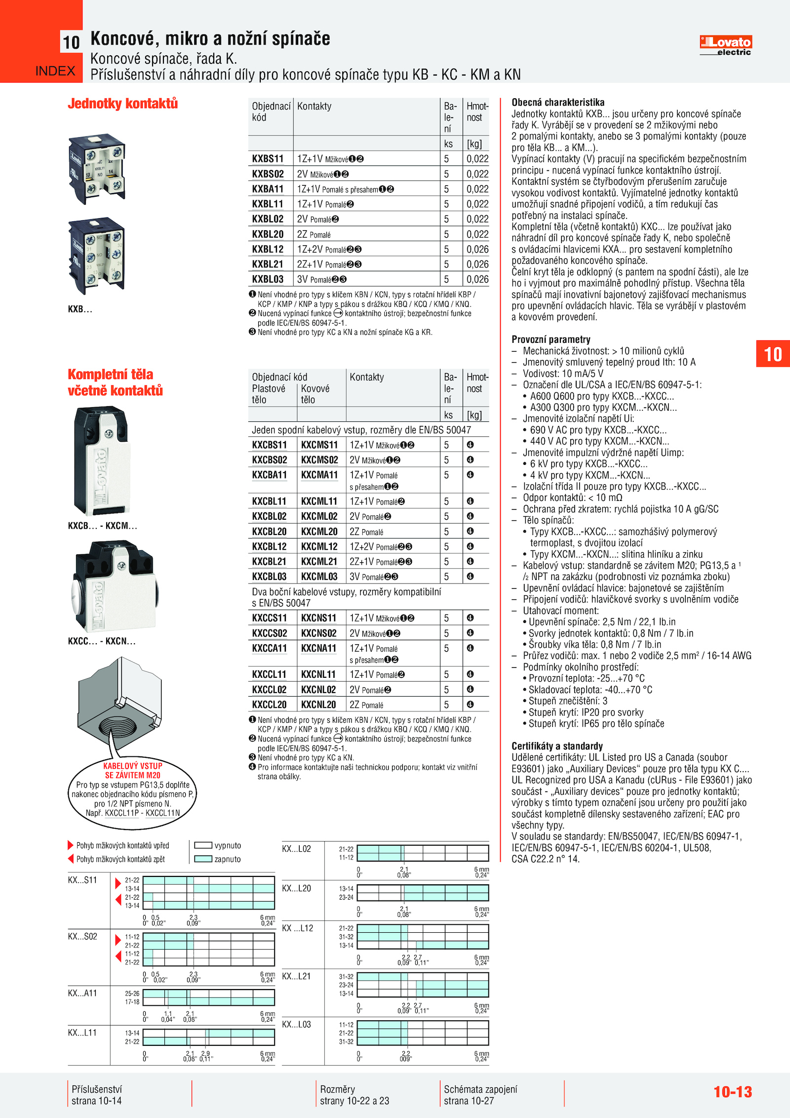 • Typy KXCB. Vyjímatelné jednotky kontaktů