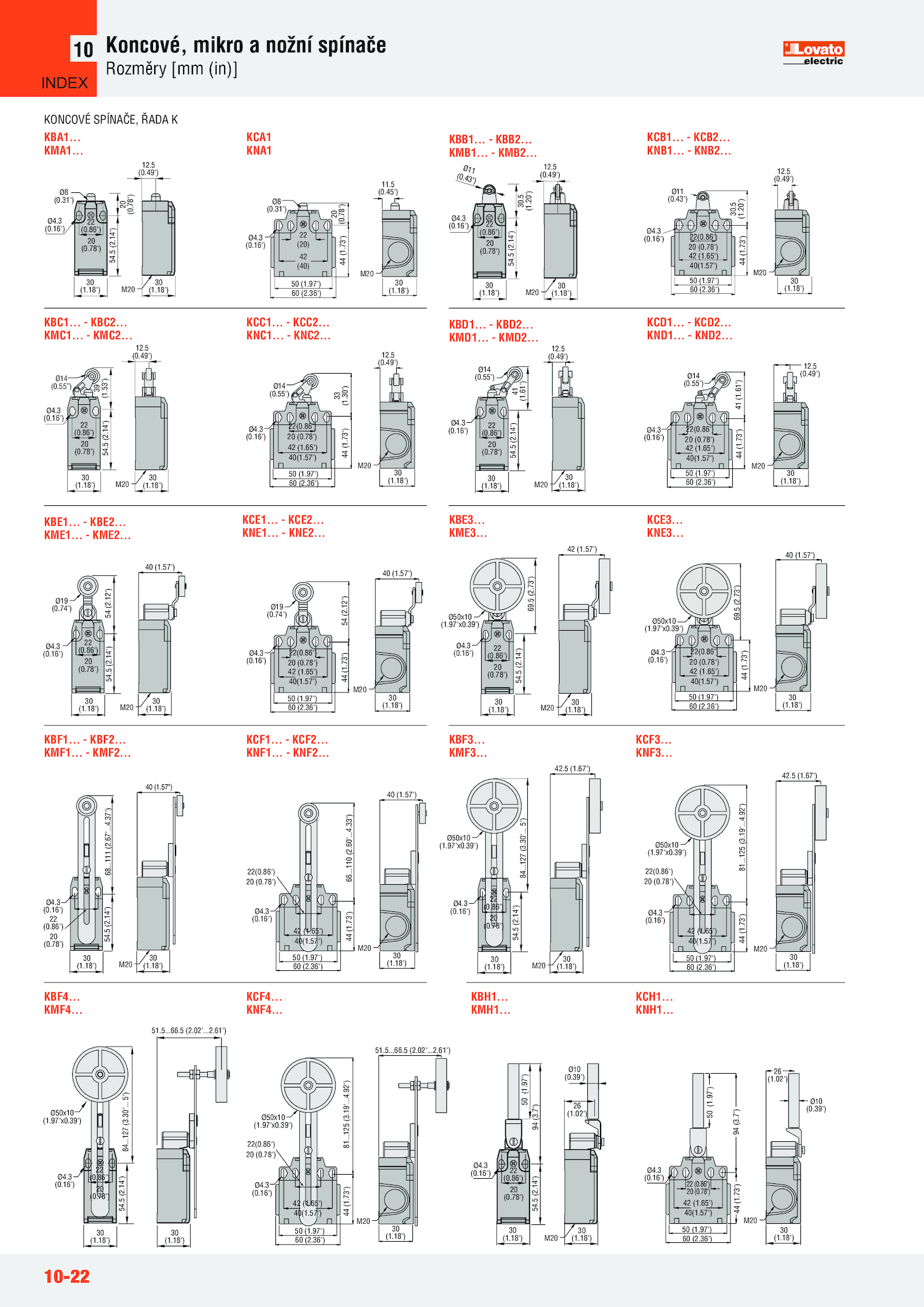 7") 26 (1.02") 22 (0..3 (0.49") 30 (1.30".125 (3.18") 22(0..16") 30 (1..18") 22 (0.86") 20 (0.73") 33 (1.97"x0...3 (0. 5") 51.14") Ø50x10 (1..16") 30 (1.43") 12...78") M20 Ø8 (0.86") 20 (0...19".5 (2..57") 50 (1.36") 44 (1.16") 30 (1..39") Ø4.74") 30 (1.65") 40(1.16") 30 (1.18") 22(0.67") 30 (1.2.97") 60 (2.3 (0.65") 40(1. KBE2.3 (0.78") 50 (1.78") 42 (1.5...61") KONCOVÉ SPÍNAČE, ŘADA K KBA1.78") 44 (1.66....78") 54...74") Ø4.86") 20 (0.97"x0... KME1.. KNF2.. KNB1.86") 20 (0.18") 22 (0..5 (2.78") 44 (1.31") 11.55") 12. KCB2.. KMC2..67"..36") M20 69.5 (0.14") Ø50x10 (1.39") 12.5.86") 20 (0..73") 20 (0.. KMF2. KME2.57") Ø19 (0.36") M20 30 (1.4.73") Ø50x10 (1.43") 12.97") 60 (2....57") 50 (1. KND2.73") 41 (1...49") Ø4....2.5 (2.. KBB1..36") Ø8 (0....57") Ø19 (0.61") 30 (1..5 (0.18") 22(0....18") Ø14 (0..3 (0.16") 30 (1.4.7") 26 (1.53") M20 Ø14 (0..18") Ø4.67") Ø50x10 (1.5 (2..18") Ø4.57") 50 (1. KNH1.18") 22(0..57") 69.12") 40 (1.16") 30 (1.16") 30 (1.18") 44 (1..10-22 Koncové, mikro nožní spínače Rozměry [mm (in)] 10 KBD1..18") 22 (0.36") 42 (1.86") 20 (0. KBF2.65") 40(1.16") 30 (1.20") 42 (1.. KMB2. KCF4.18") 22(0. KCF2. KCC2.86") 20 (0.18") Ø4.19".3 (0.5 (2.86") 20 (0.65") 40(1. KMF3.73") 42 (1.92") 42...86") 20 (0. KCC1. KBF3.73") 42 (1.3 (0..39") 30 (1.57") 50 (1..30"..57") Ø50x10 (1.39") 50 (1.5 (2...02"...73") 94 (3.97") Ø4....86") 20 (0..16") 30 (1.55”) 12. M20 Ø14 (0..16") 22 (0..73") 40 (1.12") M20 54 (2..57") 50 (1..3 (0..97"x0..5 (0.5 (0.3 (0..16") 30 (1. 84. KCE3..14") KBF1.78") 54.5 (2..73") 30. KBC2.16") 30 (1.18") Ø4.36") KBF4.73") 42 (1.37") 30 (1.57") M20 40 (1. KNF4..3 (0.. 5") 42.60".18") Ø4.5 (2.18") Ø4.86") 20 (0..18") Ø4.18") 22 (0..86") 20 (0.18") 22 (0.....49") Ø4.65") 40(1. KNC1. KMB1.45") Ø4. KNE2..86") 20 (0.16") 30 (1. KNE1.18") 22(0.3 (0..5 (1.73") 42 (1.5 (0...14") 39 (1.61") 42 (1.3 (0.78") 54.14") 54 (2.97"x0.18") Ø4..3 (0... KND1. KMD2.16") 30 (1.39") M20 51. KBD2.5 (1.86") 20 (0.16") 30 (1..86") 20 (0.18") 22(0.16") 30 (1.97") 60 (2.49") 30 (1...5 (0.66..78") Ø10 (0..3 (0..78") 54.78") 44 (1.36") M20 44 (1. KCH1.18") 22 (0.97") 60 (2. KMF4.57") 50 (1. KMF1.18") Ø4.78") 54.78") 44 (1. KCF3.97") 60 (2.16") 30 (1..39") Ø4...14") 41 (1.78") 54.36") M20 84.65") 40(1. KNF3.16") 30 (1. M20 68.. KNB2....92") Ø50x10 (1.02". KNF1.5 (2.14") 20 (0. KMH1..49") 30 (1. KBC1..55") 12.86") 20 (0. KCF1.36") M20 42 (1. KME3.5 (2.125 (3..55") 12.97"x0..5 (2...97") 60 (2. KNE3...18") 22 (0. KMD1.3 (0.127 (3.86") 20 (0.. M20 40 (1.14") 30. KCE1..57") 50 (1.127 (3.5 (2.3 (0.97") 60 (2.. KCD2...78") 44 (1... KNC2...31") 42 (40) 22 (20) M20 M20 Ø11 (0..3 (0..111 (2.3 (0. KCD1.3 (0...78") 54.14") 40 (1.78") 54..97"x0.65") 40(1. KMA1..5 (0...61") 81.78") 44 (1.02") 30 (1.5 (2..65") 40(1.97") 60 (2..57") M20 94 (3.65") 40(1.97") 60 (2.33") Ø4.16") 30 (1..86") 20 (0.49") 30 (1.5 (1. KBE1.16") 30 (1..97") 60 (2...4.36") M20 81.110 (2.18") Ø4.39") Ø4. KCE2. KCA1 KNA1 KCB1. KBH1.78") 54..57") 66. KBE3.97") ,1'(; .4..18") 22 (0.73") 42 (1.39") 50 (1. KMC1.18") 22(0.78") 44 (1.18") 50 (1.20") M20 Ø11 (0....5 (1.3 (0.14") Ø10 (0.5 (2.49") Ø4..5 (0...30") M20 Ø14 (0. KBB2...57") 50 (1..86") 20 (0..18") 22 (0.78") 54..