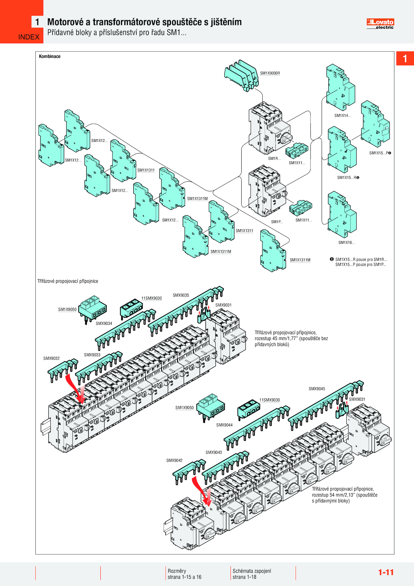 SMX9032 SMX9033 SMX9034 SMX9035 SMX9031 SMX9042 SMX9043 SMX9044 11SMX9030 SMX9045 SMX9031 SM1X9050 SM1X9050 11SMX9030 SM1X15........R❶ SM1R.......R pouze pro SM1R. SM1X11.. SM1X15... SM1X1311M SM1X1311 SM1X9000R SM1X15... SM1X1311M SM1X1311M SM1X12... SM1P.. 1 Schémata zapojení strana 1-18 Rozměry strana 1-15 16 2VTIPUHJL Třífázové propojovací přípojnice, rozestup mm/1,77” (spouštěče bez přídavných bloků) SM1X15. SM1X1311 SM1X12..P pouze pro SM1P. SM1X16.. SM1X12.....1 Třífázové propojovací přípojnice 1-11 4V[VYV]tH[YHUZMVYTm[VYV]tZWV\ú[͌͂LZQPú[͌UxT Přídavné bloky příslušenství pro řadu SM1.. SM1X11. SM1X14...... SM1X12..P❶ Třífázové propojovací přípojnice, rozestup mm/2,13” (spouštěče s přídavnými bloky) INDEX