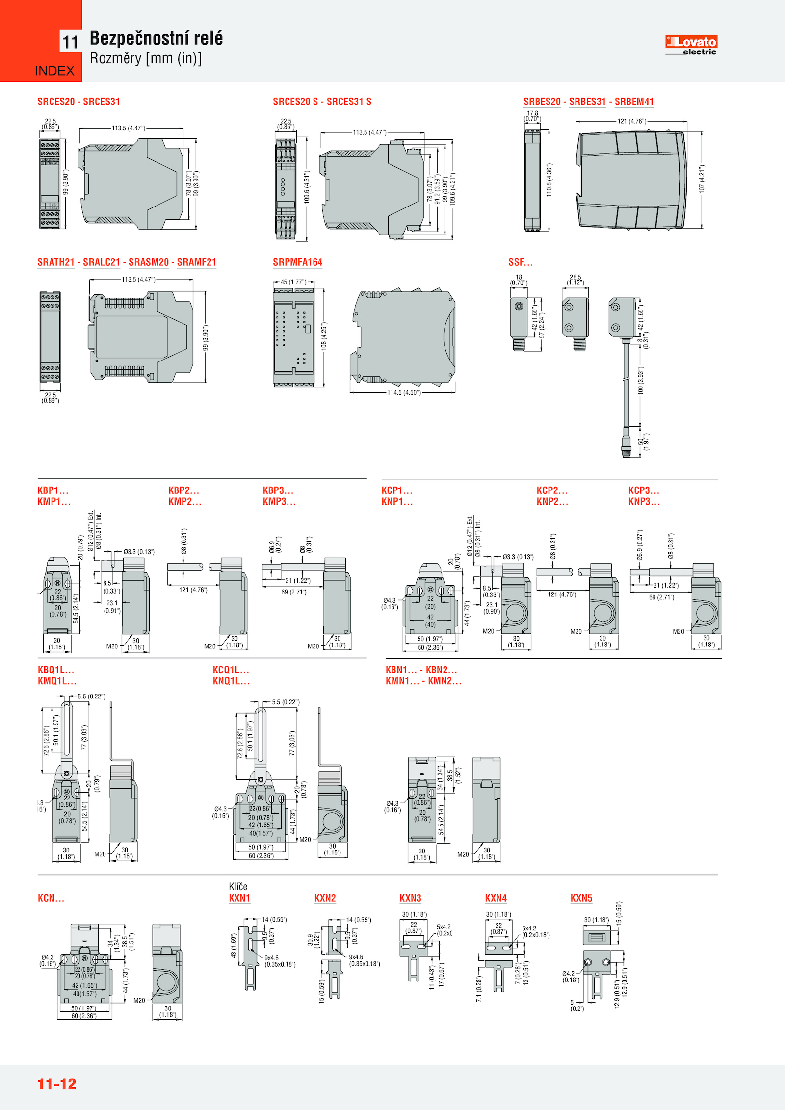 5 (0.6 (0.... 42 (40) 22 (20) Ø4..1 (0.6 (0.18") 22 (0.2x0.5 (0.16") 30 (1.73") 42 (1.18") 15 (0.18") 5x4.18") 5x4..87") 30 (1.51") 30 (1.18") 5x4..1 (0.51") 5 (0.33”) KCP3.18") 22 (0.6 (0.3 (0.28") 7 (0.86") 20 (0.51") 5 (0.2 (0.87") 7.65") 40(1.6 (0.18") 15 (0.90”) 78 (3.28") 13 (0.18") 22 (0.18") 14 (0.18") 14 (0.2x0.55") 9..18") 22(0.55") 9.71") 31 (1.18") 5x4.86") 20 (0..6 (0.28") 13 (0.67") 9x4.2x0.13") Ø12 (0. KMQ1L.65") 40(1.18") 22 (0. KCQ1L.2x0..8 (0.78") 54.51") 12.16") 30 (1.87") 7.2 (0.6 (2.76”) 107 (4.97") 60 (2.69") 9x4.2x0.18") 14 (0.22”) 72.5 (0.5 (0.5 (0.55") 9.14") 23.5 (4.18") KBQ1L.6 (0.14") 69 (2.9 (0. M20 77 (3.59”) 99 (3.03") 20 (0.18") 22 (0.55") 9.2 (0.71") 31 (1..78") 30 (1.18") Ø4.37") 15 (0.5 (0.9 (1.31”) Int.65") 40(1.9 (1..51") 30 (1.14") 5.18") 11 (0.18") Ø4.18") 14 (0..3 (0.14") KBP1.78") 42 (1.69") 9x4..3 (0.47”) 17.86") 20 (0.55") 9.3 (0.2 (0...86”) 50.9 (0.2 (0.. KCP2.37") 15 (0.07”) 99 (3.55") 9.22") 22 (0. Ø8 (0.18") M20 38,5 (1.31”) 78 (3.9 (0.5 (2.18") Ø4.87") 7.9 (0.97”) M20 77 (3,03") Ø4.9 (0.28") 13 (0.35x0..3 (0.18") 22 (0.36") 30 (1.25”) 114.37") 15 (0.87") 30 (1.6 (0.57") 50 (1.9 (1.87") 30 (1..34") 30 (1.31") 30 (1.18") 11 (0.18") 14 (0.86") 20 (0.1 (0.2x0.55") 9.90”) 109.86") 20 (0.1 (0.18") 14 (0.51") 30 (1.67") 9x4.28") 13 (0.18") 14 (0.18") 5x4.5 (0..36") 23.78") 121 (4.18") 15 (0.87") 30 (1.5 (2.51") 5 (0.2") Ø4.21”) SRBES20 SRBES31 SRBEM41 SRPMFA164 SSF.2x0.59") 12.18") 11 (0.2") Ø4. KMP2.18") M20 38,5 (1.37") 43 (1.59") 12.5 (2.9 (0.2 (0. M20 8.5 (0.33") 30 (1.89”) 99 (3. KBP2.97") 60 (2.5 (0.16") 30 (1.3 (0.65") 40(1.5 (1.18") 5x4.59") 30.97") 60 (2.18") KCP1.57") 50 (1.9 (1.77”) 108 (4.36") 5.35x0.5 (2.35x0.43") 17 (0.3 (0. M20 Ø4.55") 9.37") 15 (0.18") 22 (0.69") 9x4.18") Ø4.55") 9.34") 30 (1.51") 12.5 (0.9 (0..5 (2.18") 5x4..43") 17 (0.22") 22 (0.18") M20 38,5 (1.37") 43 (1.1 (1.31") Ø4.14") INDEX .86”) 50.31") 20 (0..34") 30 (1.65”) 57 (2.18") 14 (0.2") Ø4.36") 69 (2.18") 22 (0.2 (3..18") 5x4..73") Ø4.76") 54.16") 30 (1..37") 43 (1.18") M20 38,5 (1.79") 30 (1.86") 20 (0.9 (0.16") 44 (1.9 (0..31") Ø4.43") 17 (0.5 (2. KNP3.36") 20 (0.2 (0.14") 30 (1.16") 30 (1.34") 30 (1.14") M20 44 (1.1 (0.31”) 100 (3.52") 34 (1.2x0.90") 30 (1.18") 14 (0.86”) 109.13") Ø12 (0.2x0.18") 15 (0..35x0.90”) 113. M20 8.78") KBP3.78") 50 (1.5 (4.18") 5x4.78") 44 (1.28") 7 (0.87") 30 (1..47”) 22.69") 9x4.51") 12.43") 17 (0. KBN2..9 (0.18") 22 (0.78") 54.2 (0.5 (4.28") 13 (0.86”) 99 (3.18") M20 121 121 (4.73") 20 (0.78") 54.59") 30..2") Ø4.35x0.79") 30 (1.35x0.31”) 113.34") 30 (1.86") 20 (0.18") 22 (0.97") 60 (2.2 (0.52") 34 (1.5 (0.2x0.2 (0.3 (0. M20 54.28") 7 (0.2x0.18") 20 (0.18") 22 (0.67") 9x4.6 (4.2 (0.12”) 42 (1..2") Ø4.37") 15 (0.78") 54.5 (0.18") Ø4.78") 54.78") 54.52") 34 (1.78") 30 (1.34") 30 (1.87") 7.97”) KBN1.16") 30 (1.18") 15 (0.9 (0. KNP2.70”) 110.78") 42 (1.37") 43 (1.78") 44 (1.5 (2.37") 15 (0. KNP1.55") 9. KMP1.07”) 91.51") 30 (1.3 (0. SRCES20 SRCES31 SRCES20 SRCES31 S 22.86") 20 (0.3 (0.6 (0.18") 14 (0.1 (0.86") 20 (0.5 (0.34”) KXN3 KXN1 Klíče KXN2 KXN4 KXN5 30 (1.18") 5x4.. 20 (0.6 (0. 30 (1.35x0.3 (0.37") 43 (1.22") Ø6.69") 9x4.59") 30.18") 5x4.18") Ø4.5 (0.18") 22(0.57") 38.2 (0.76") Ø8 (0.78") 54.18") 14 (0.3 (0.2x0. KMN2.5 (2.51") 30 (1..9 (1.35x0.2 (0..18") 11 (0.51") 30 (1.2") Ø4.2 (0.24”) 8 (0.5 (0.59") 12.50”) 18 (0.11-12 Bezpečnostní relé Rozměry [mm (in)] 11 45 (1.18") 15 (0.73") 42 (1.28") 7 (0.73") 20 (0.3 (0.6 (0.59") 12.78") 54.78") 44 (1.59") 30.97") 60 (2.43") 17 (0.6 (0.5 (0.93”) 50 (1.9 (0.9 (1.22") 22 (0.35x0.18") 22 (0.55") 9.2 (0.6 (0.22") 22 (0.51") 12.14") 30 (1.47”) Ext.86") 20 (0.47”) Ext.3 (0.35x0.52") 34 (1.3 (0.28") 13 (0. KMP3.67") 9x4.18") M20 38,5 (1.18") 22 (0.59") 12.16") 22 (0.97”) 22.52") 34 (1.51") 5 (0.69") 9x4.2 (0..2 (0.90”) S34S35 A2 S22 S21 13 14 21 22 A1 S12 S11 113.22") 22 (0.16") 22(0. KMN1.51") 12.5 (4.27") Ø8 (0.16") 30 (1.14") Ø8 (0.18") 22(0.5 (0.86") 20 (0.51") 5 (0.87") 30 (1.5 (2.59") 30.16") 30 (1.86") 20 (0.5 (2.52") 34 (1....1 (1.35x0.16") 50 (1.18") 5x4.28") 7 (0.27") Ø8 (0.14") 30 (1. KCN.16") 30 (1.16") 30 (1.35x0.3 (0.78") 20 (0. Ø8 (0.70”) 28.59") 12.5 (0.91") Ø3.18") Ø4.9 (0.18") Ø3.51”) 34 (1.18") 22(0.22”) 72.59") 30.6 (2.22") 22 (0.55") 9.2 (0.51") 5 (0.87") 7.5 (1..6 (4.16") 30 (1..1 (0.37") 43 (1.57") 50 (1.43") 17 (0.3 (0.31”) Int....1 (0.67") 9x4.18") M20 38,5 (1.22") Ø6.18") 11 (0.67") 9x4.18") Ø4.18") 22 (0.18") 14 (0.87") 7. KNQ1L.86") 20 (0.36”) 121 (4.47”) SRATH21 SRALC21 SRASM20 SRAMF21 M20 Ø4.51") 12.65”) 42 (1.86") 20 (0.8 (4.9 (0.78") 30 (1.18") 11 (0.28") 7 (0..5 (0