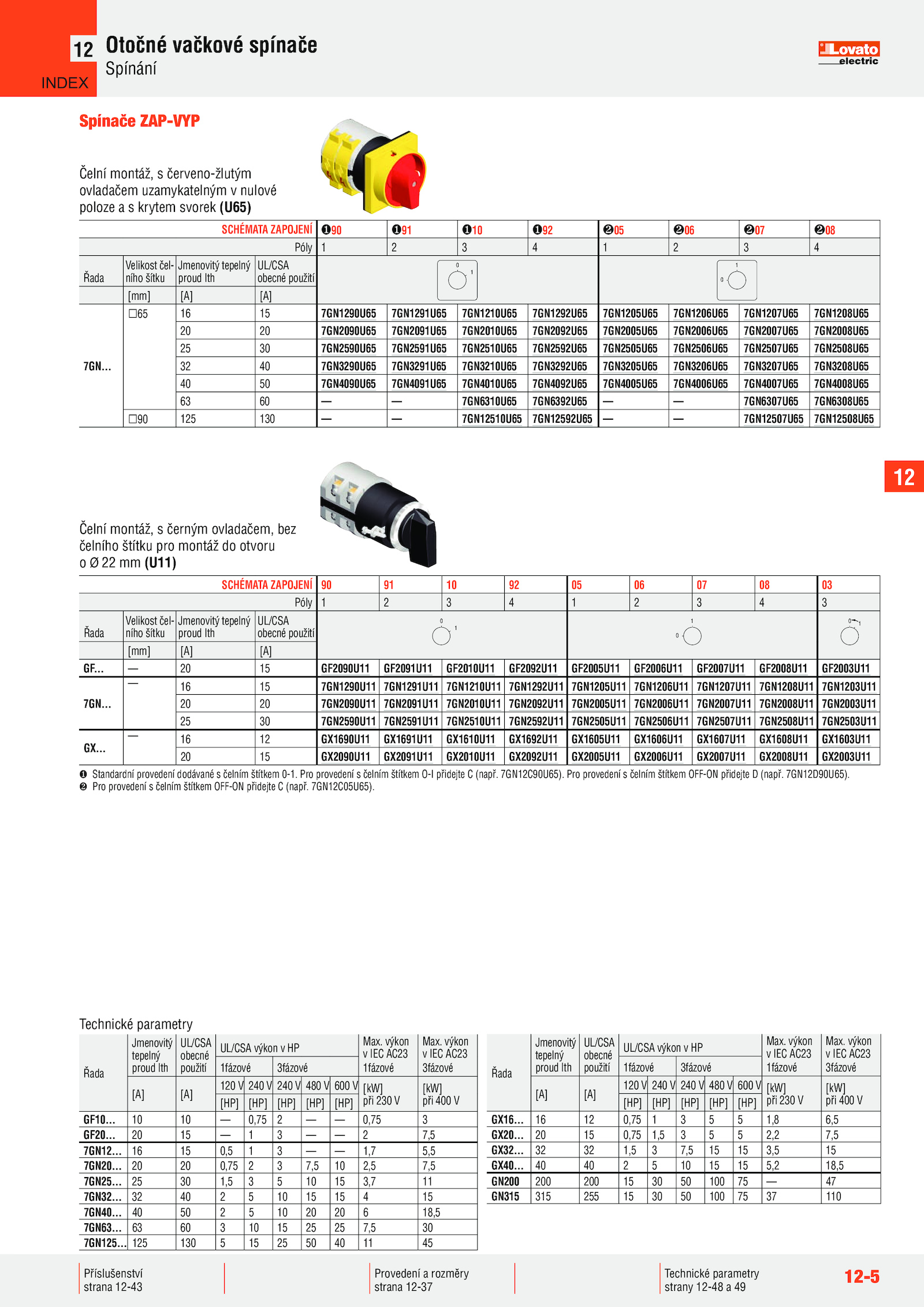 Standardní provedení dodávané čelním štítkem 0-1.... Pro provedení čelním štítkem OFF-ON přidejte (např.. 0,75 0,75 3
