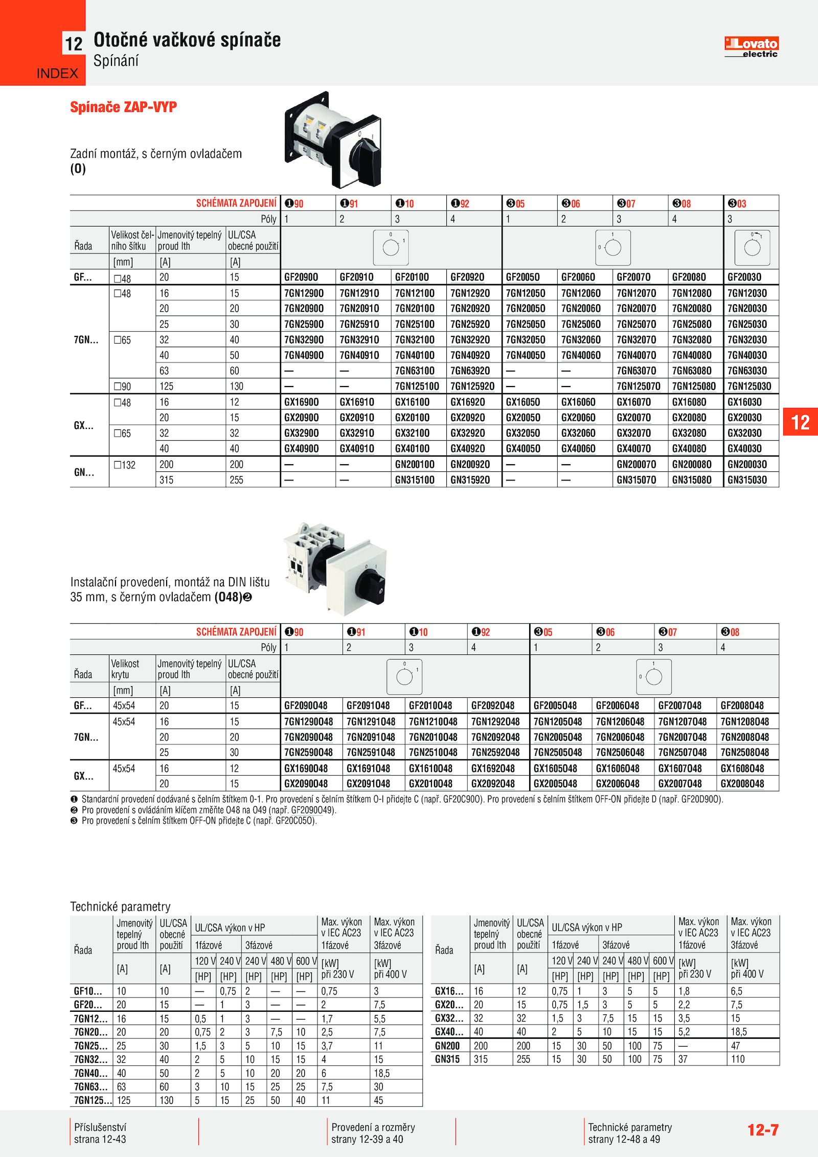 7GN40.. Pro provedení čelním štítkem OFF-ON přidejte (např... GF20C90O).. GF20C05O). výkon