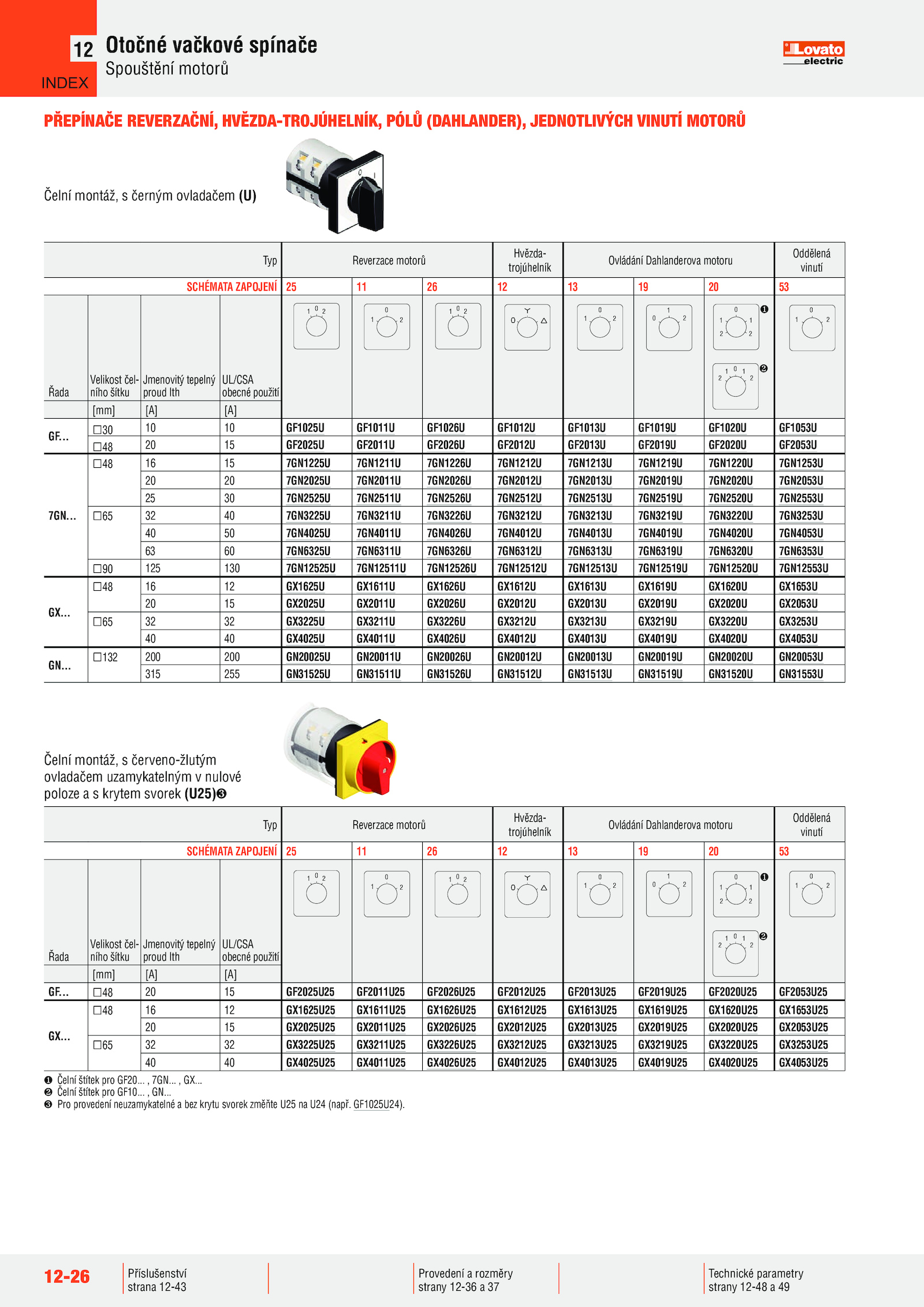 PŘEPÍNAČE REVERZAČNÍ, HVĚZDA-TROJÚHELNÍK, PÓLŮ (DAHLANDER), JEDNOTLIVÝCH VINUTÍ MOTORŮ