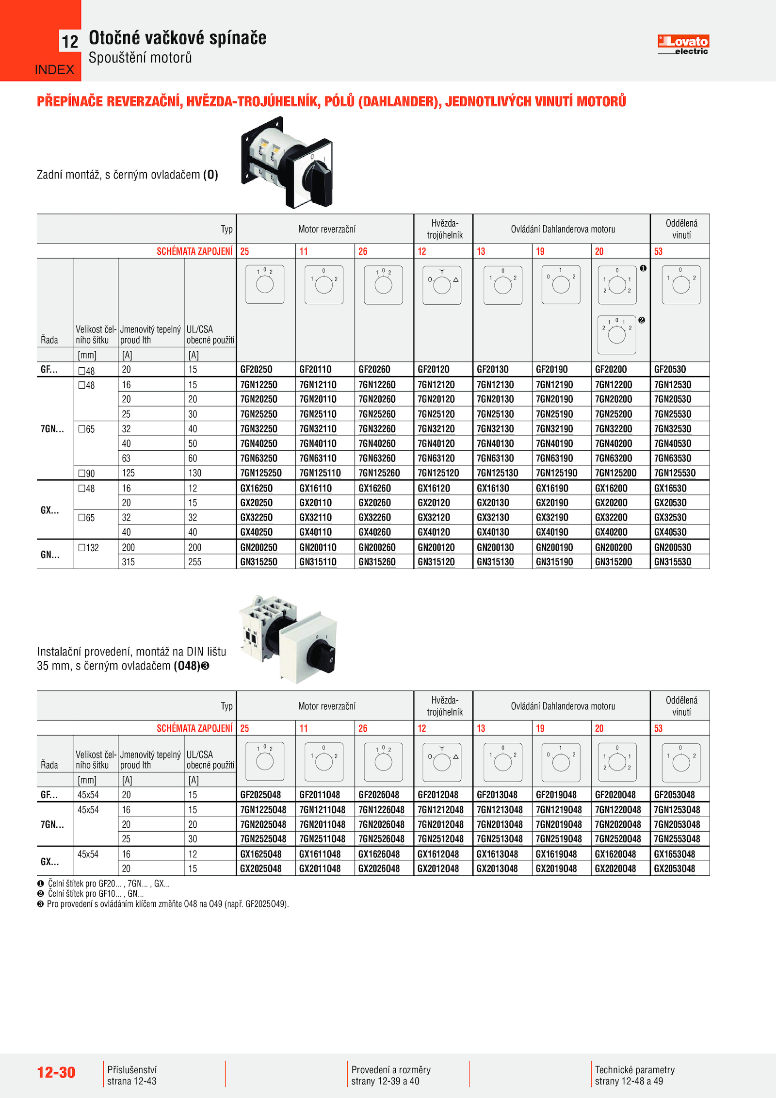PŘEPÍNAČE REVERZAČNÍ, HVĚZDA-TROJÚHELNÍK, PÓLŮ (DAHLANDER), JEDNOTLIVÝCH VINUTÍ MOTORŮ