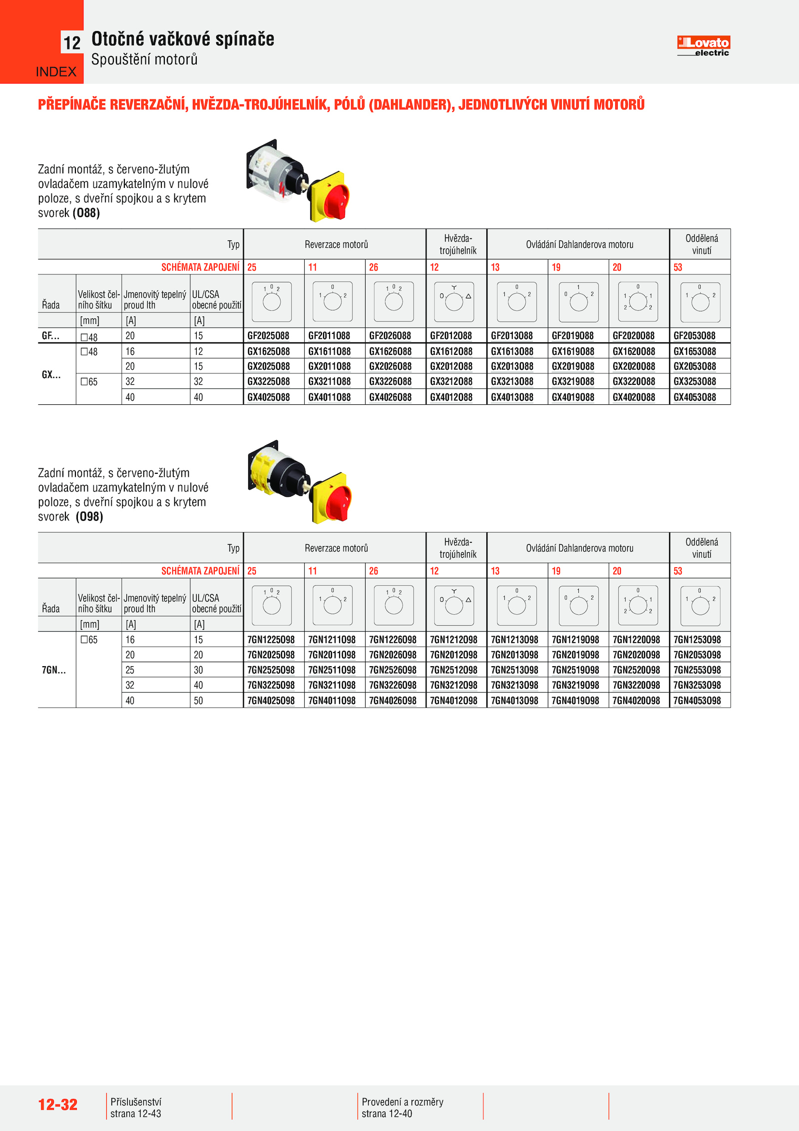 PŘEPÍNAČE REVERZAČNÍ, HVĚZDA-TROJÚHELNÍK, PÓLŮ (DAHLANDER), JEDNOTLIVÝCH VINUTÍ MOTORŮ