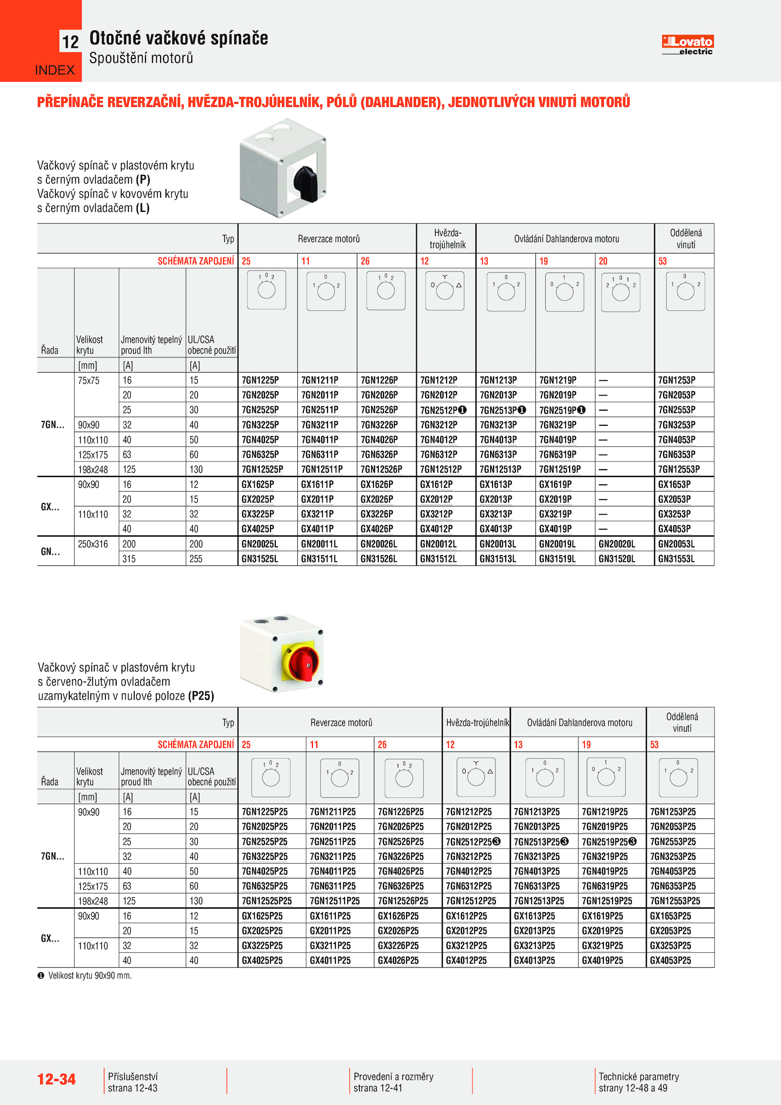 PŘEPÍNAČE REVERZAČNÍ, HVĚZDA-TROJÚHELNÍK, PÓLŮ (DAHLANDER), JEDNOTLIVÝCH VINUTÍ MOTORŮ