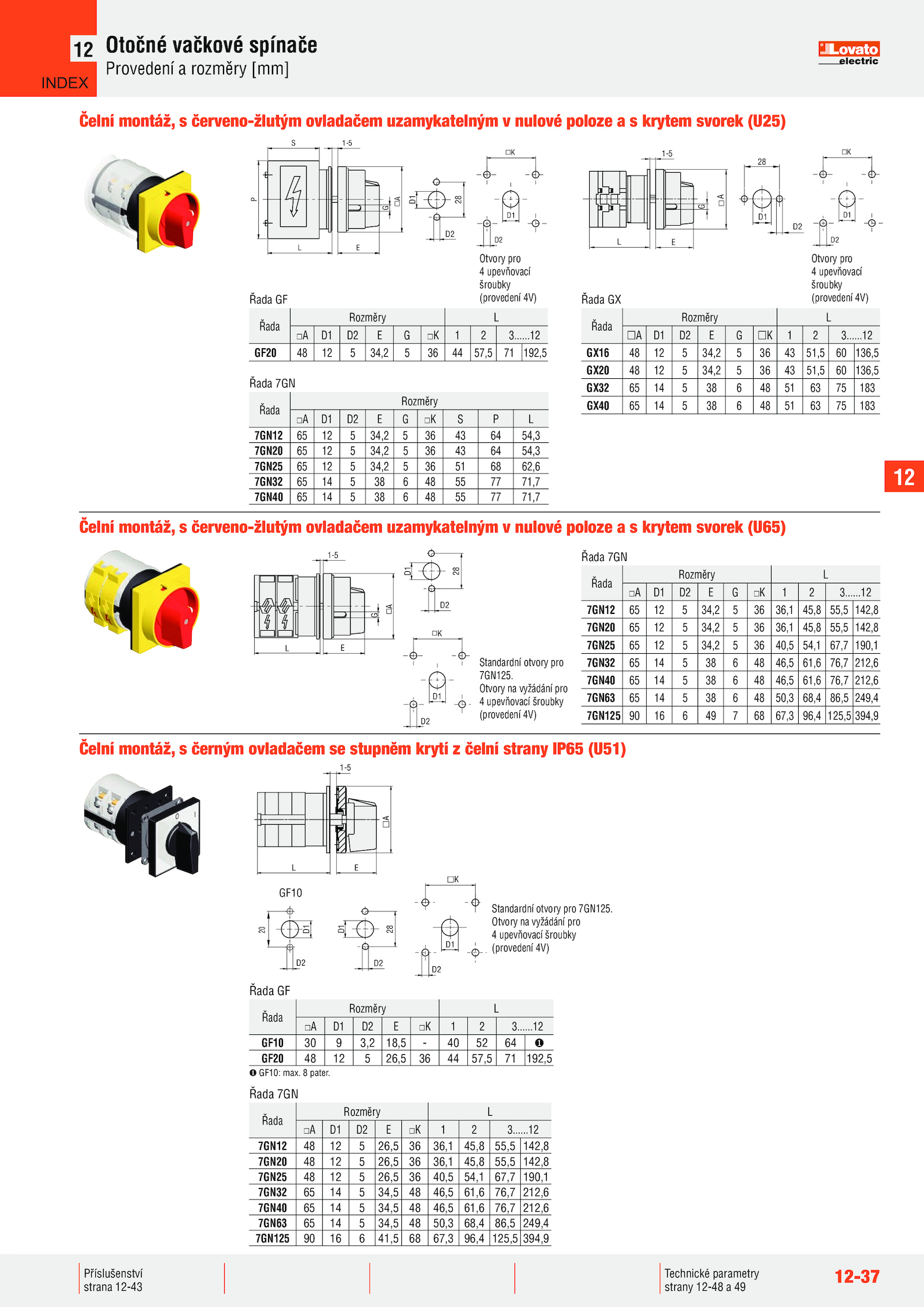 Čelní montáž, červeno-žlutým ovladačem uzamykatelným nulové poloze krytem svorek (U25)