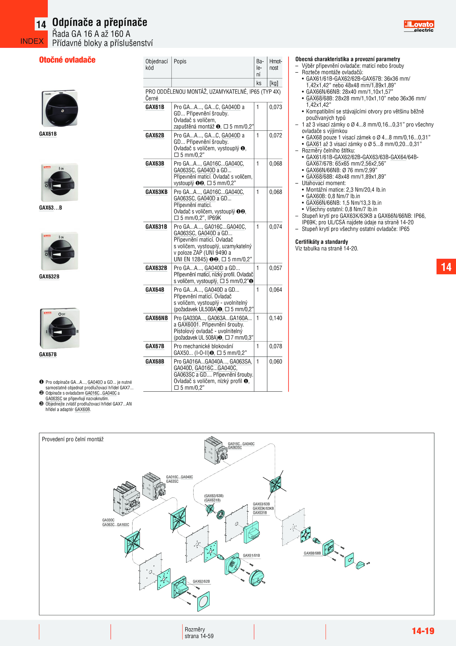 – Stupeň krytí pro GAX63K/63KB GAX66N/66NB: IP66,