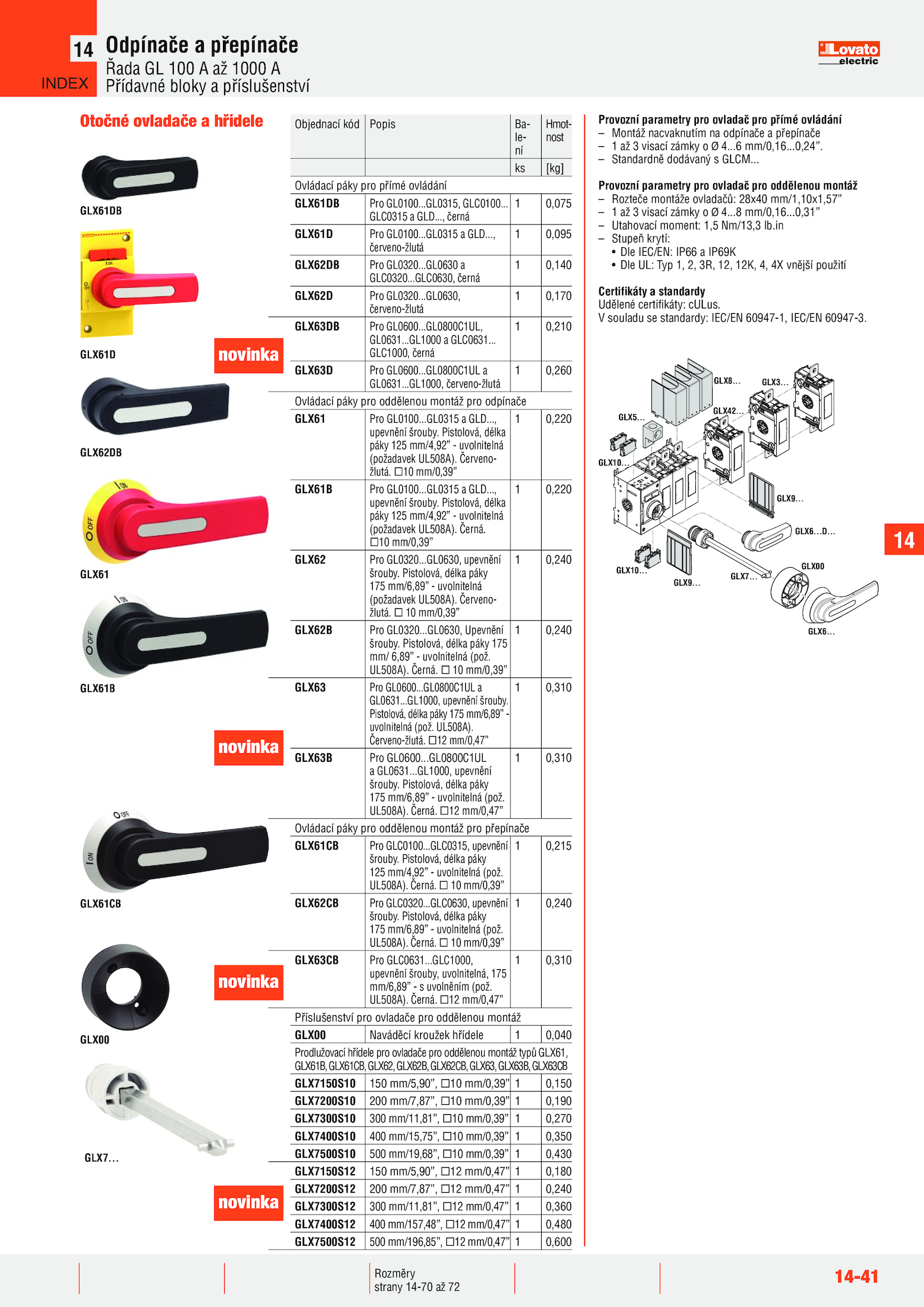 Udělené certifikáty: cULus.... Pistolová, délka páky