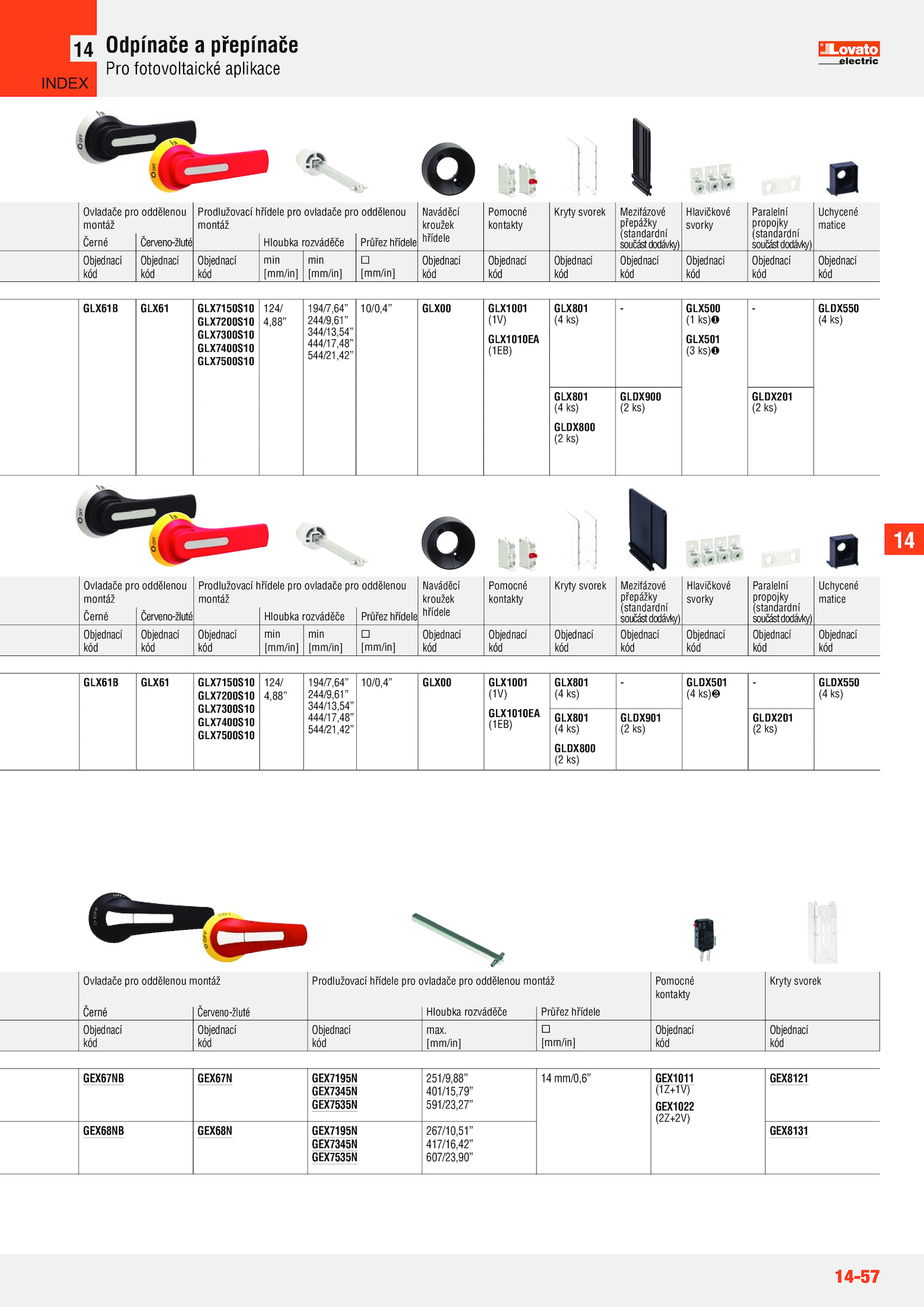 Černé Červeno-žluté Hloubka rozváděče Průřez hřídele
