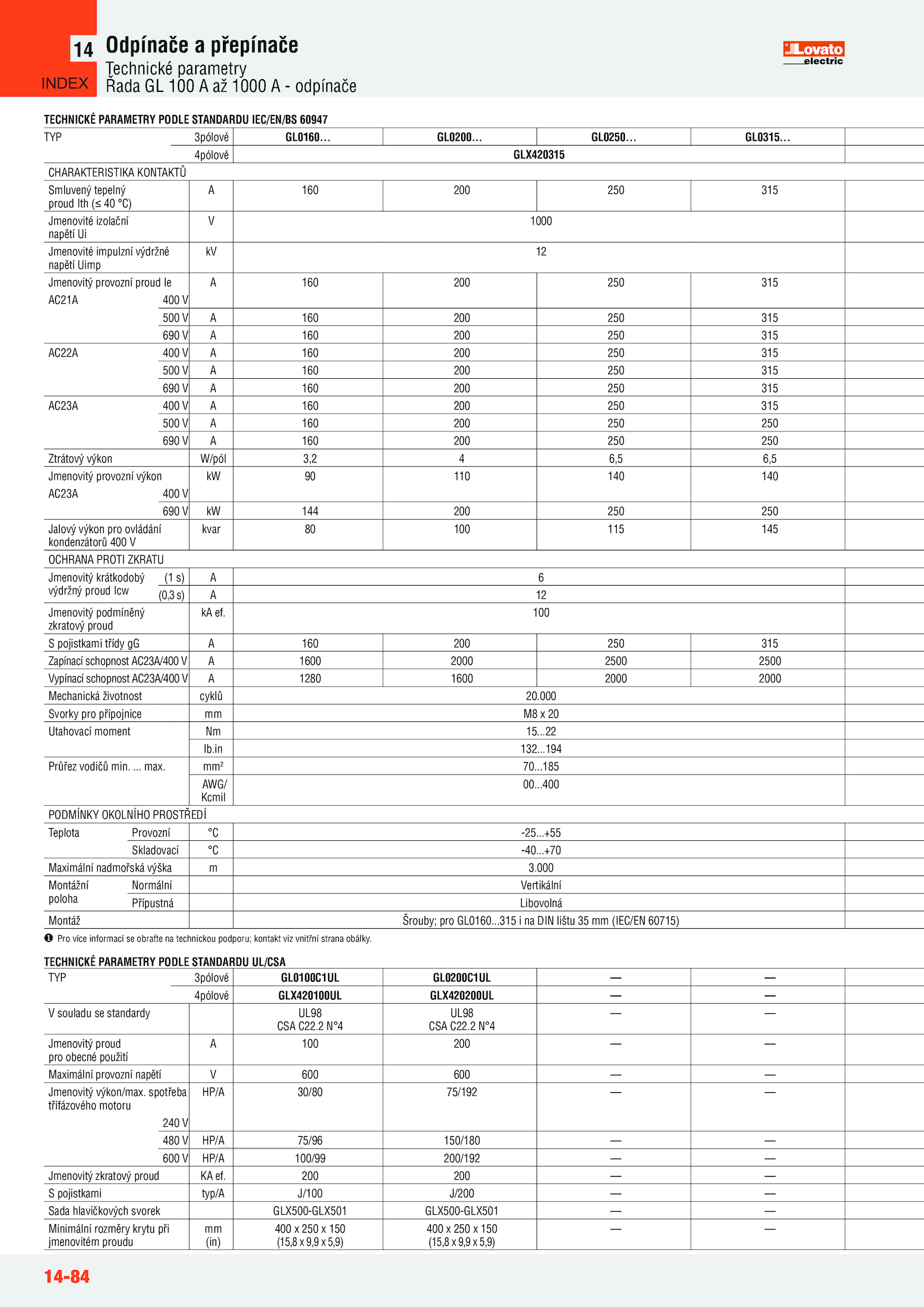 TECHNICKÉ PARAMETRY PODLE STANDARDU UL/CSA