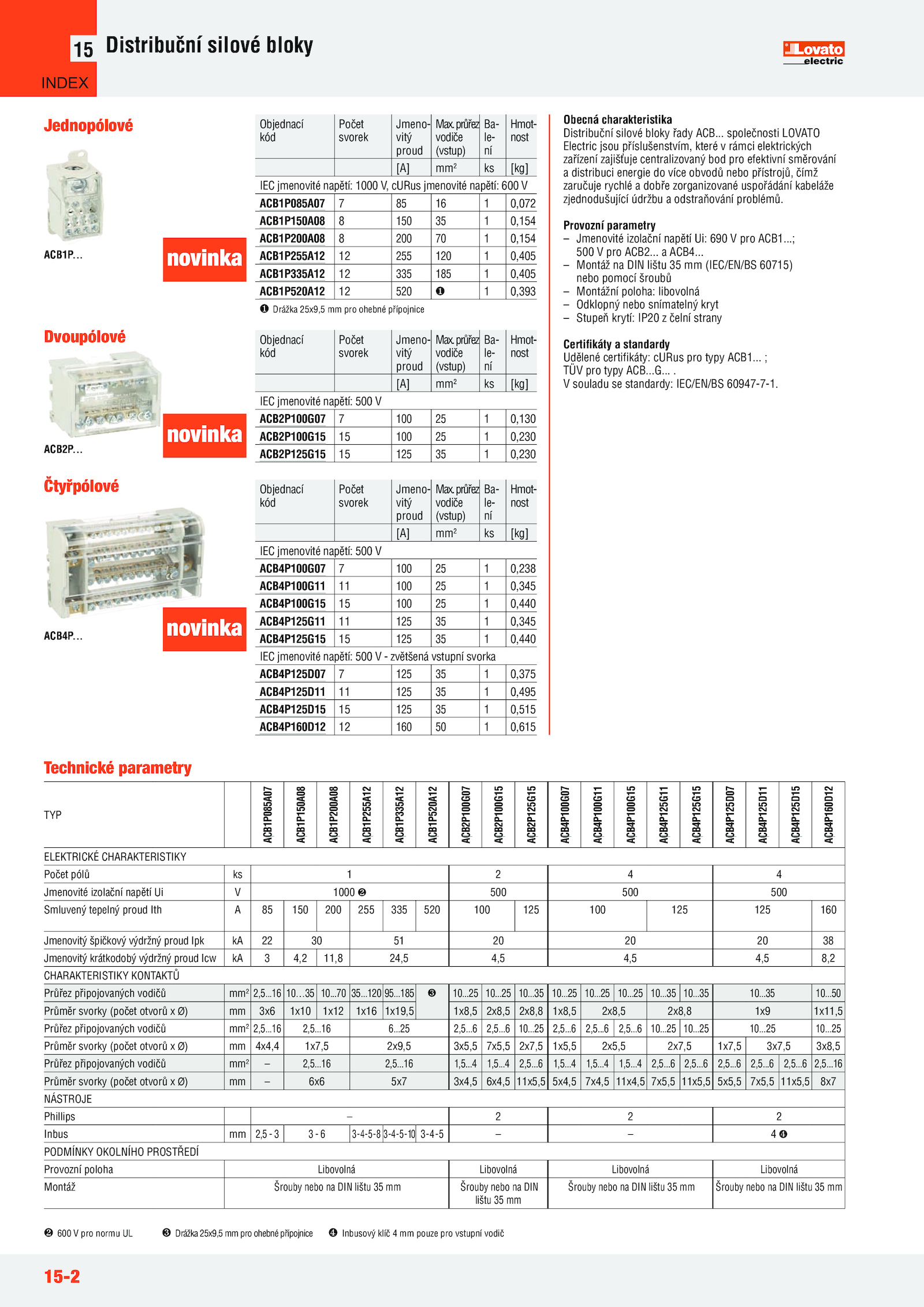 – Jmenovité izolační napětí Ui: 690 pro ACB1........35 10...25 10......35 10..... společnosti LOVATO