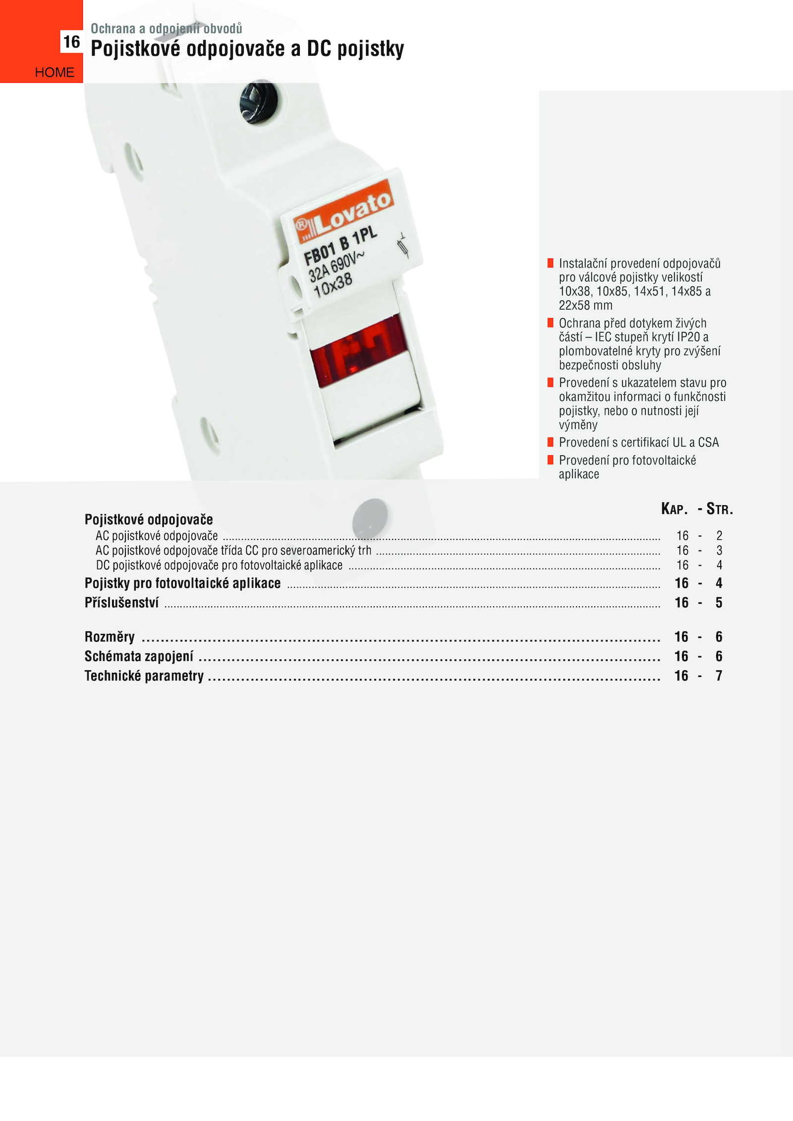 DC pojistkové odpojovače pro fotovoltaické aplikace .....................................