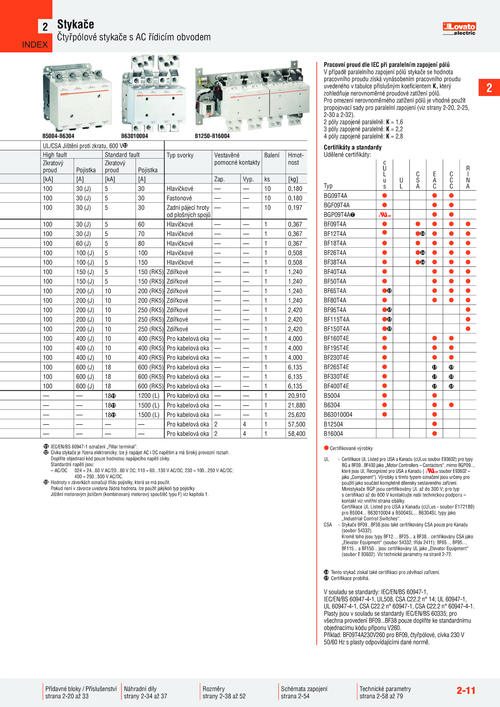 „Industrial Control Switches“.. BF150..2 60947-4-1.BF400 jako „Motor Controllers Contactors“, mimo BGP09.2 60947-1, CSA C22.