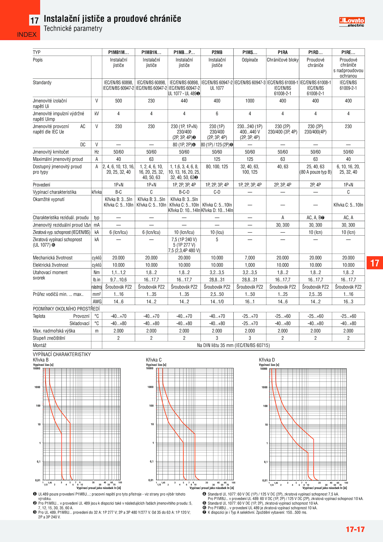 Standard 1077: (1P, 2P), zkratová vypínací schopnost kA.50 1...35 1...