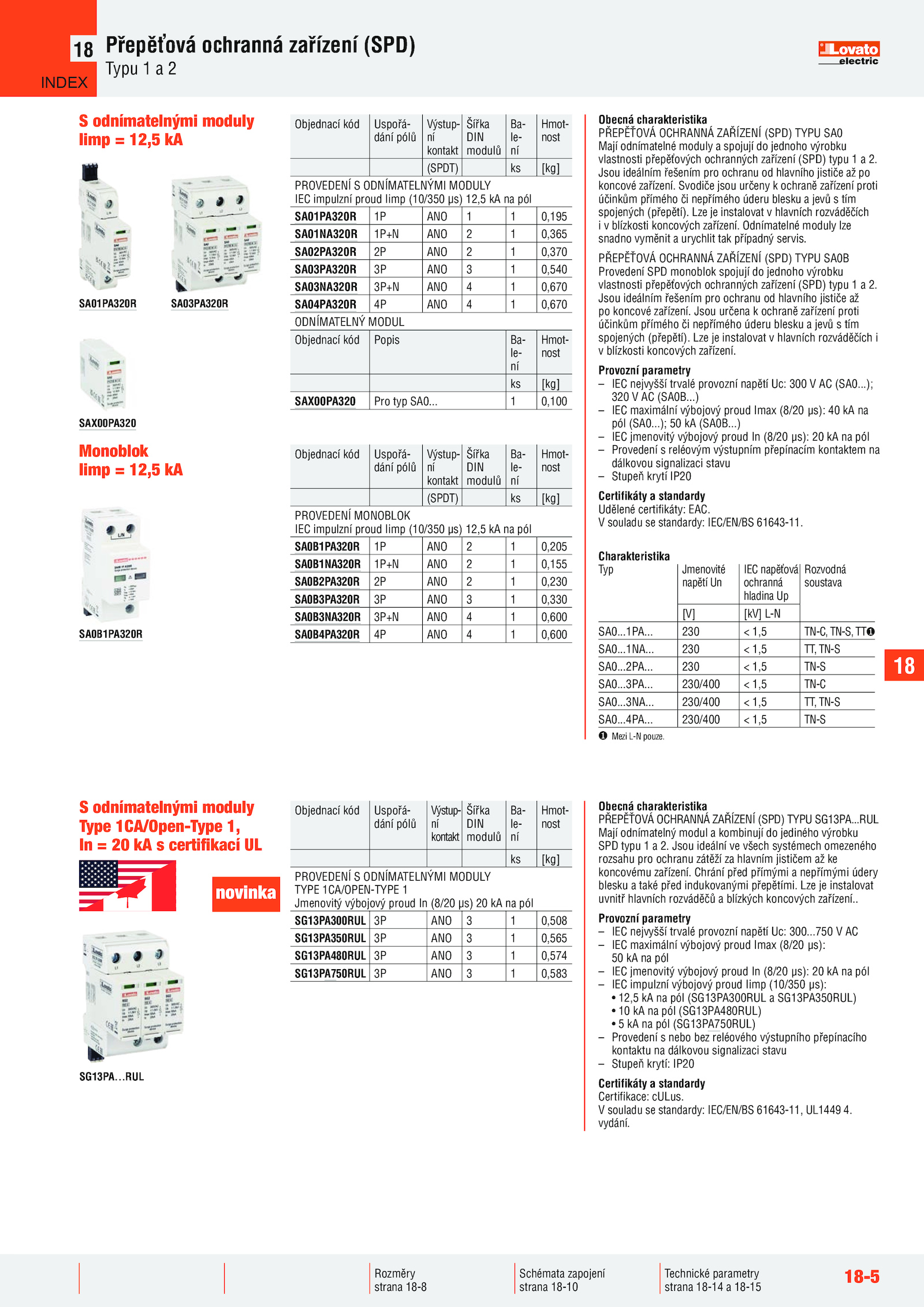 PŘEPĚŤOVÁ OCHRANNÁ ZAŘÍZENÍ (SPD) TYPU SA0