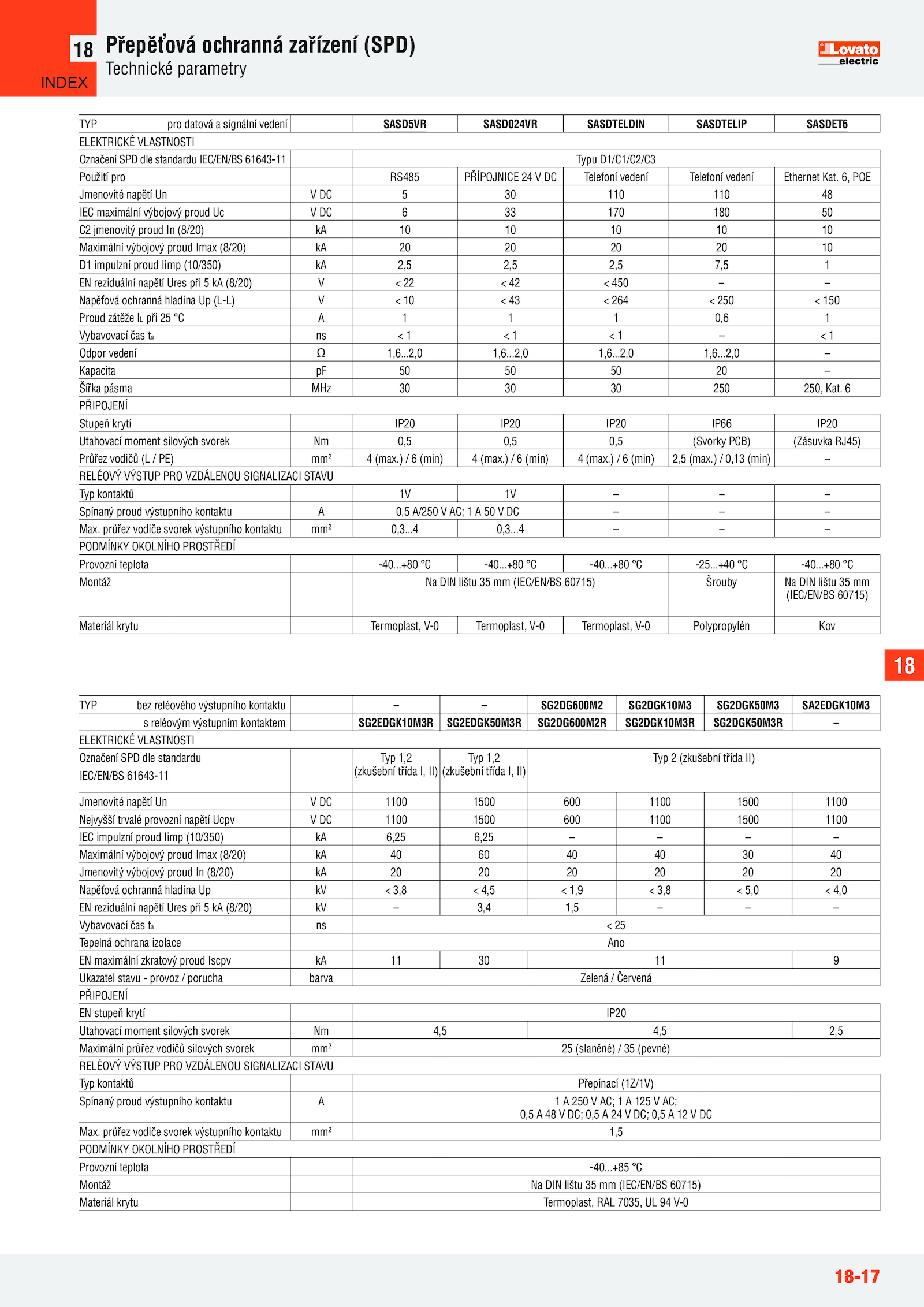 TYP pro datová signální vedení SASD5VR SASD024VR SASDTELDIN SASDTELIP SASDET6