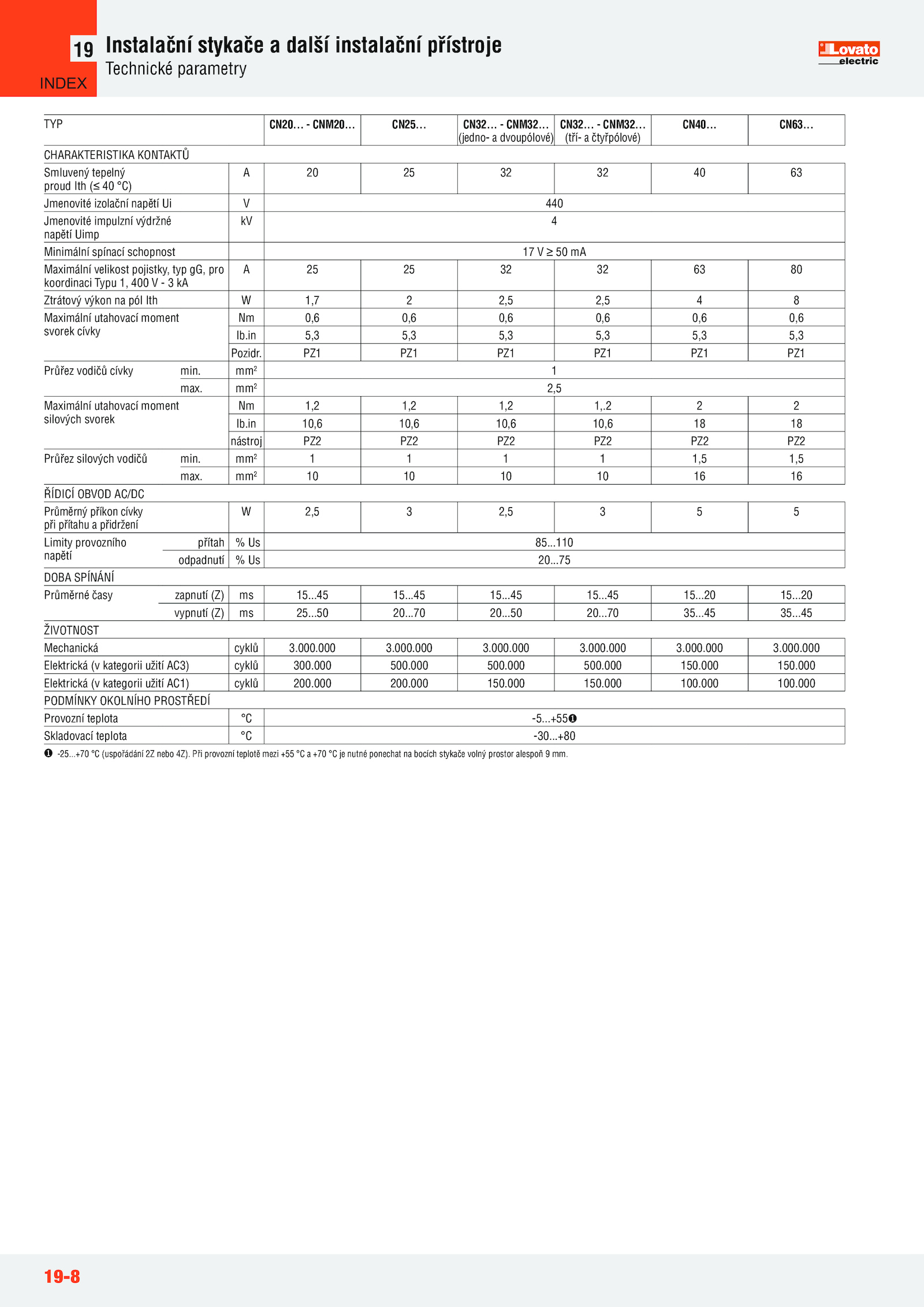 Provozní teplota -5. CN25.50 20....000 500... CN32.......000 3.000 3...000 150.000