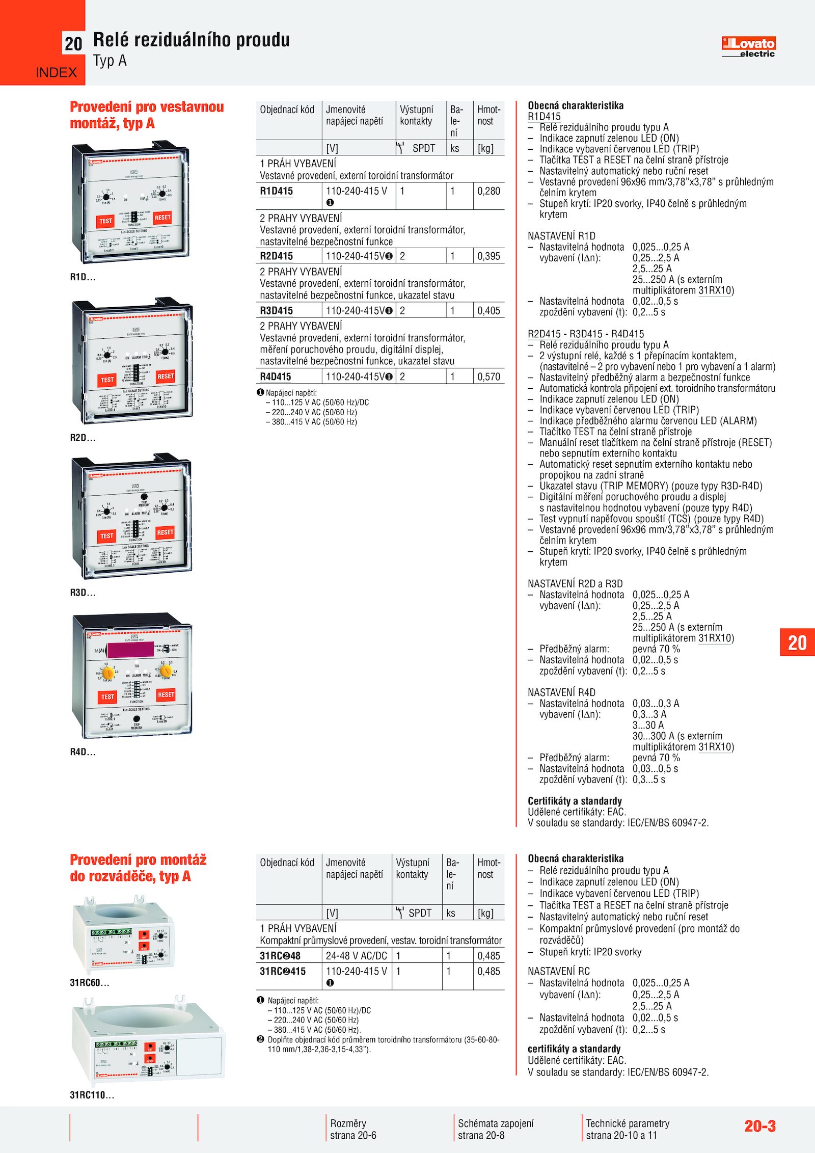 – Stupeň krytí: IP20 svorky, IP40 čelně průhledným
