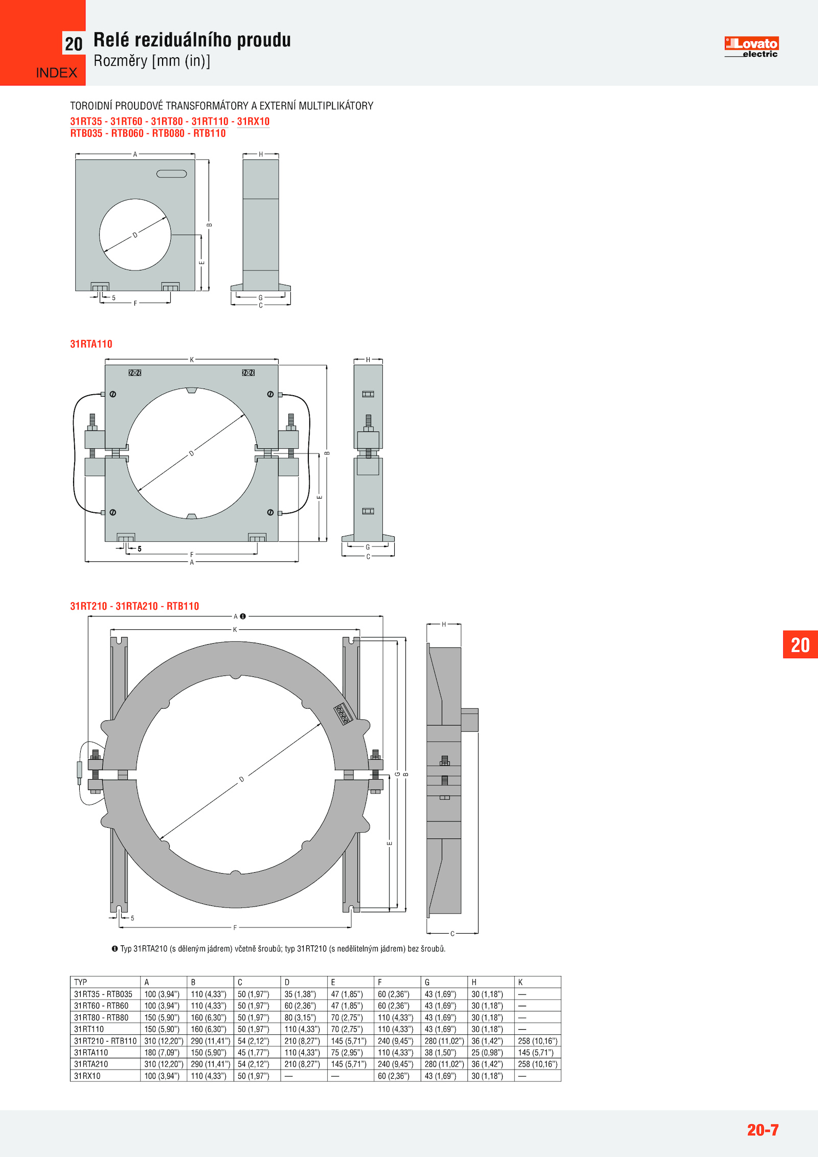 Typ 31RTA210 děleným jádrem) včetně šroubů; typ 31RT210 nedělitelným jádrem) bez šroubů.