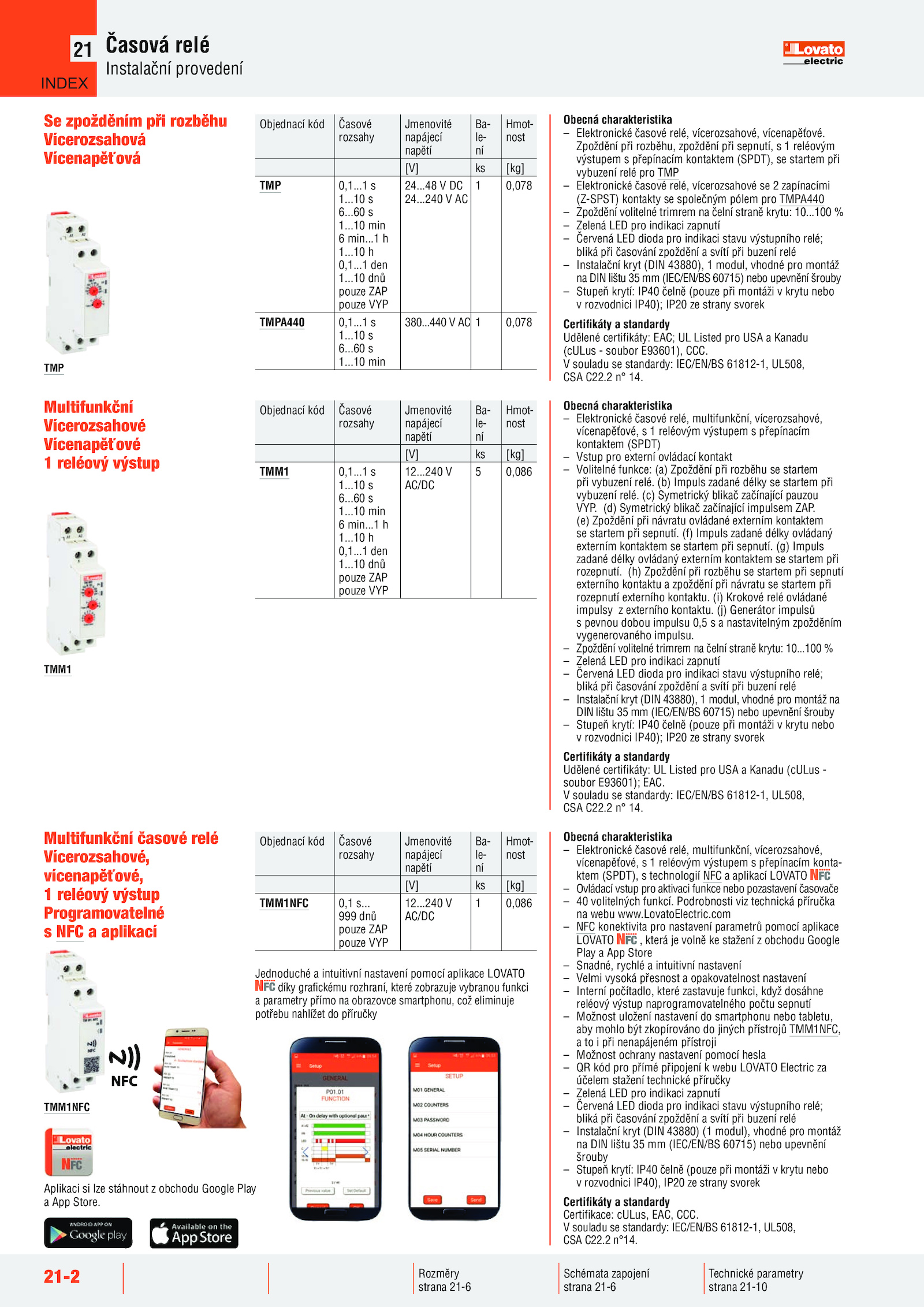 ktem (SPDT), technologií NFC aplikací LOVATO