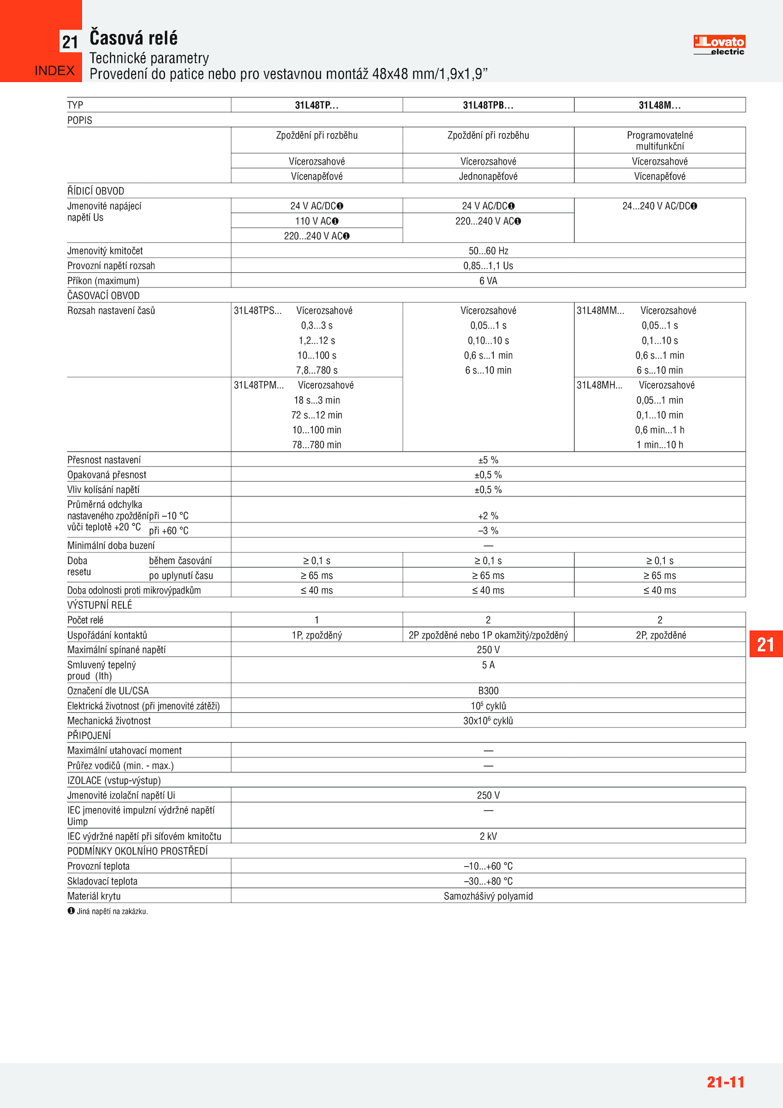 Rozsah nastavení časů 31L48TPS..... Vícerozsahové