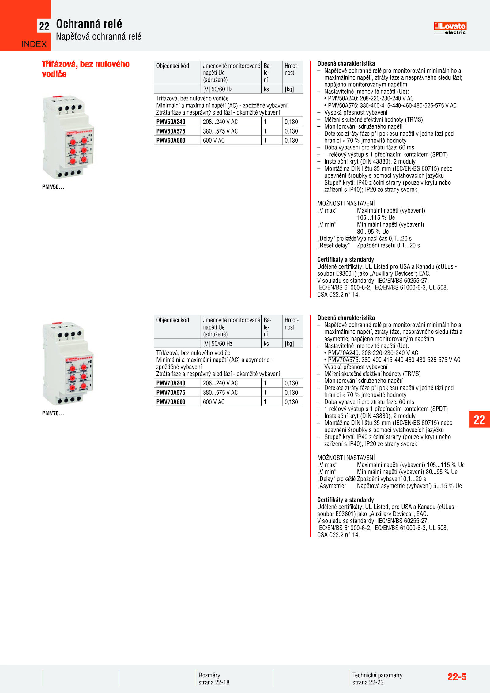 – Napěťové ochranné relé pro monitorování minimálního a