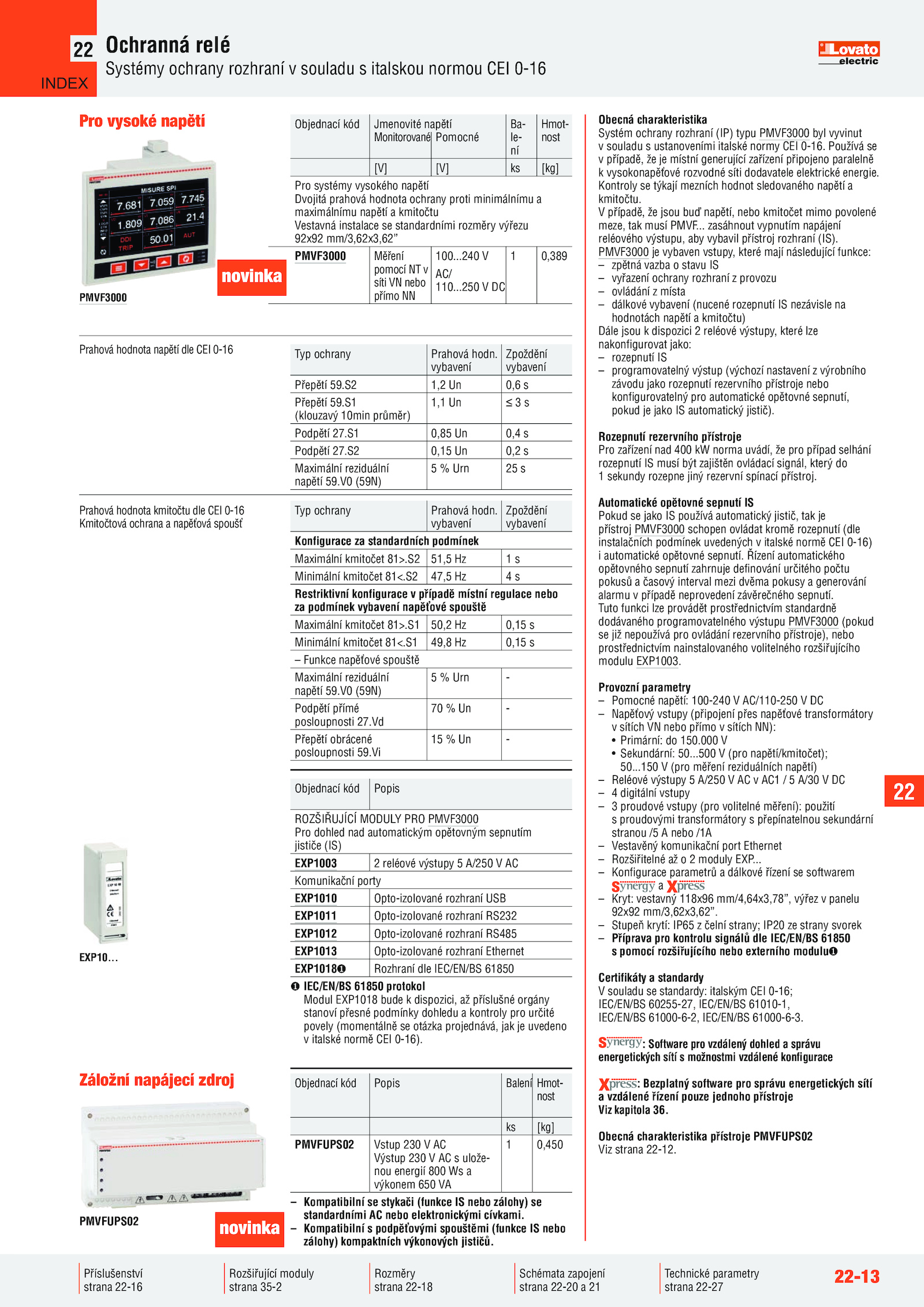 v souladu ustanoveními italské normy CEI 0-16.500 (pro napětí/kmitočet);