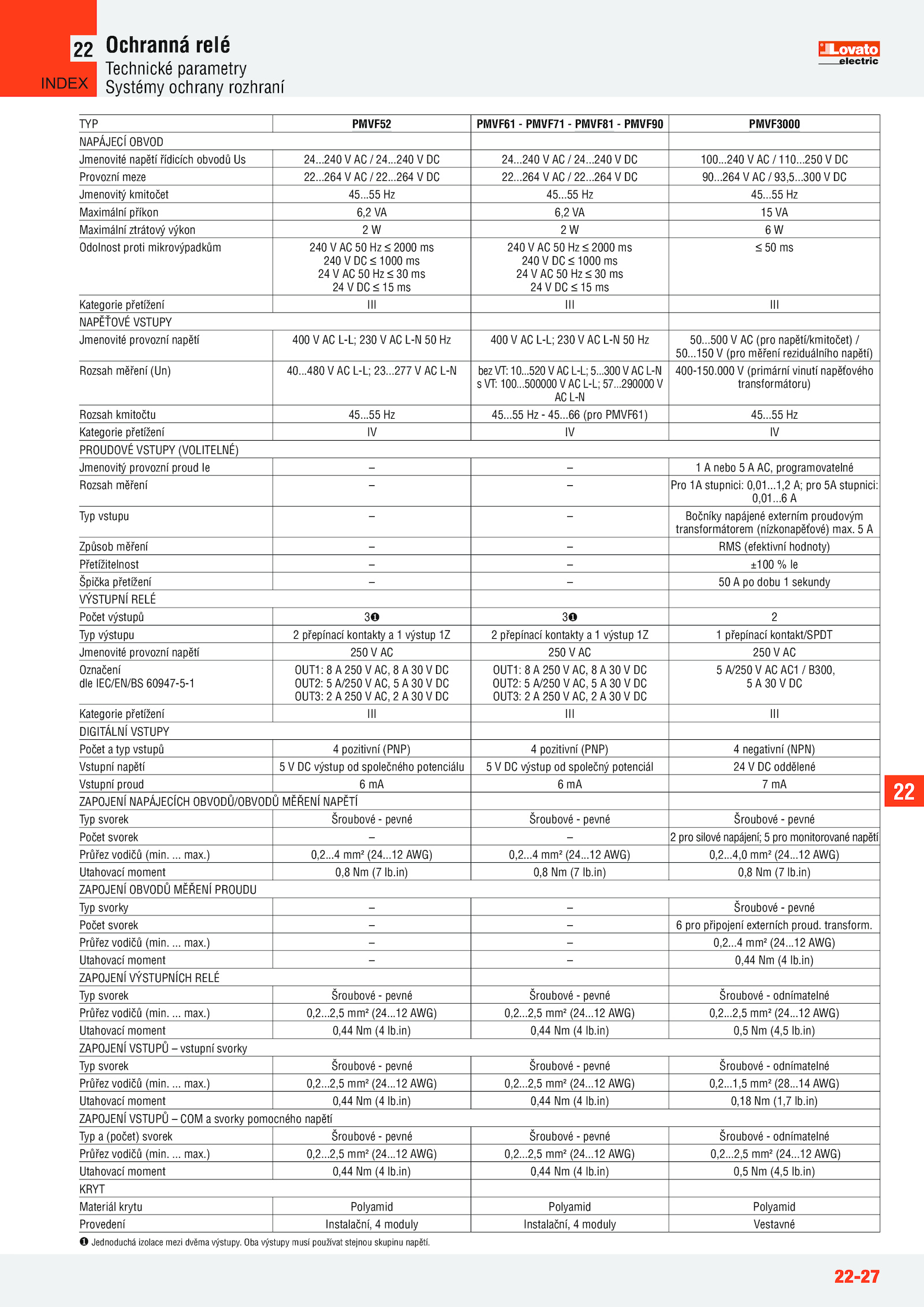 Jmenovité provozní napětí 400 L-L; 230 L-N 400 L-L; 230 L-N 50.277 L-N bez VT: 10...264 22.264 22.55 45..2,5 mm² (24... Oba výstupy musí používat stejnou skupinu napětí.