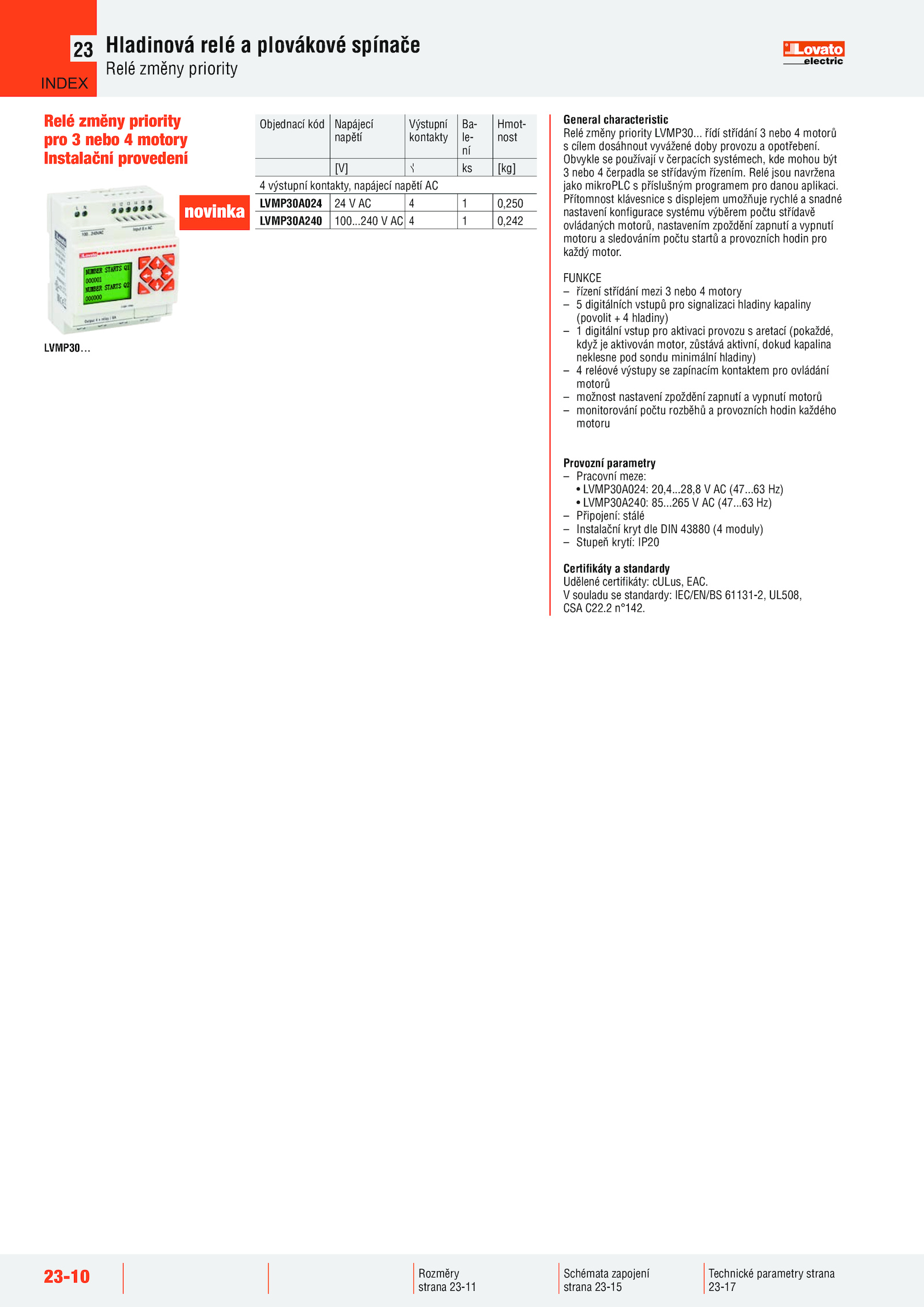 Udělené certifikáty: cULus, EAC.23-10 Technické parametry strana