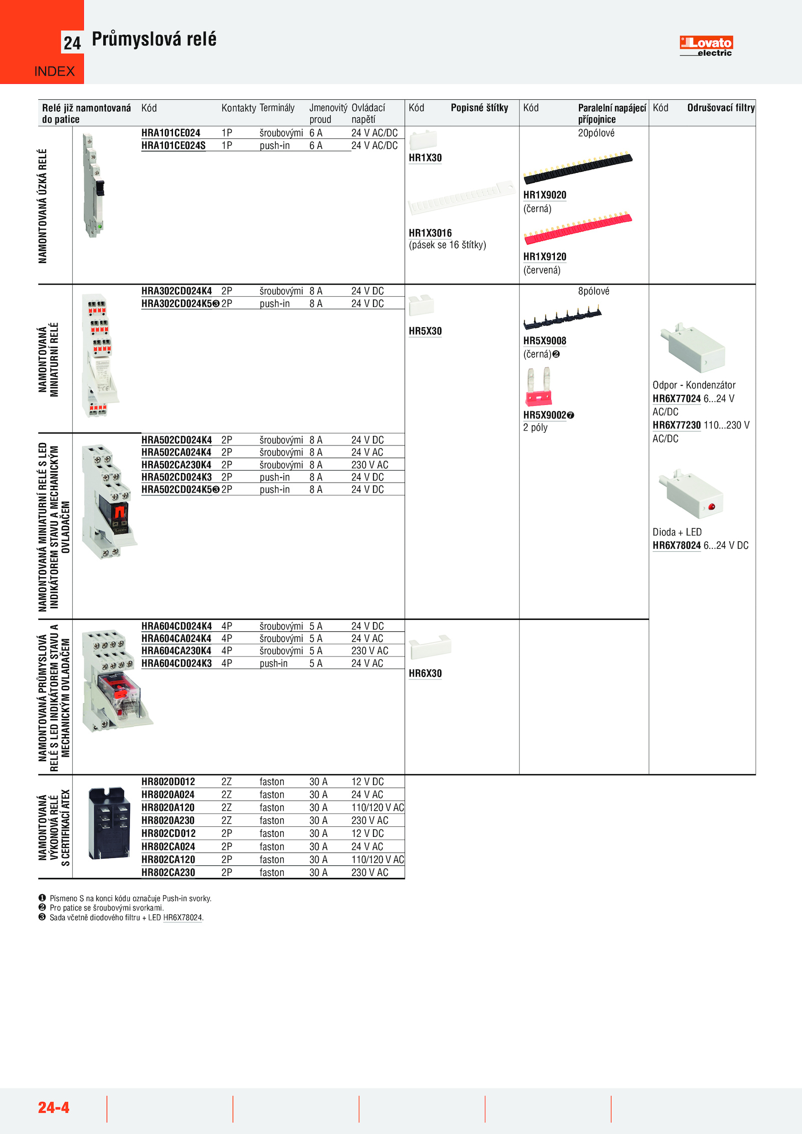 Písmeno konci kódu označuje Push-in svorky...24 V