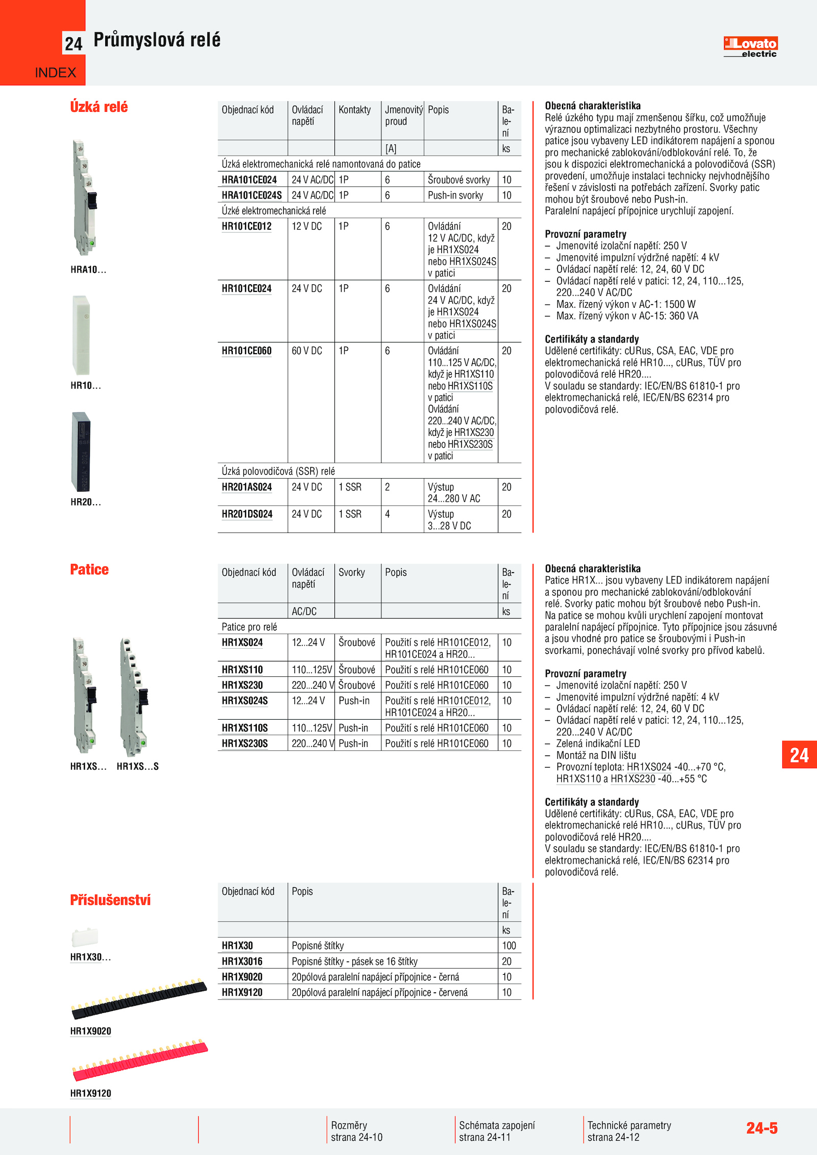 HRA10.....24 Push-in Použití relé HR101CE012,