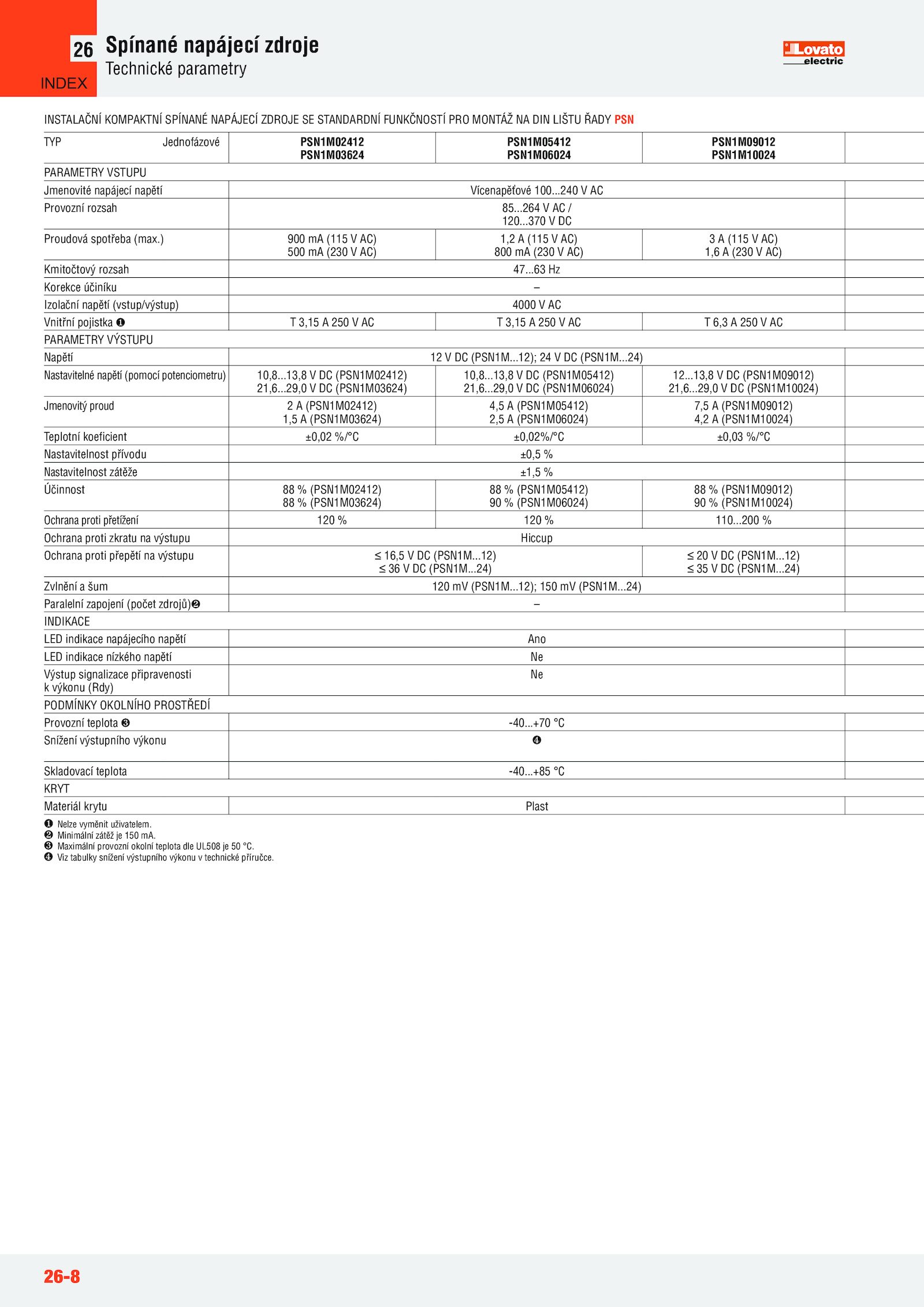 INSTALAČNÍ KOMPAKTNÍ SPÍNANÉ NAPÁJECÍ ZDROJE STANDARDNÍ FUNKČNOSTÍ PRO MONTÁŽ DIN LIŠTU ŘADY PSN