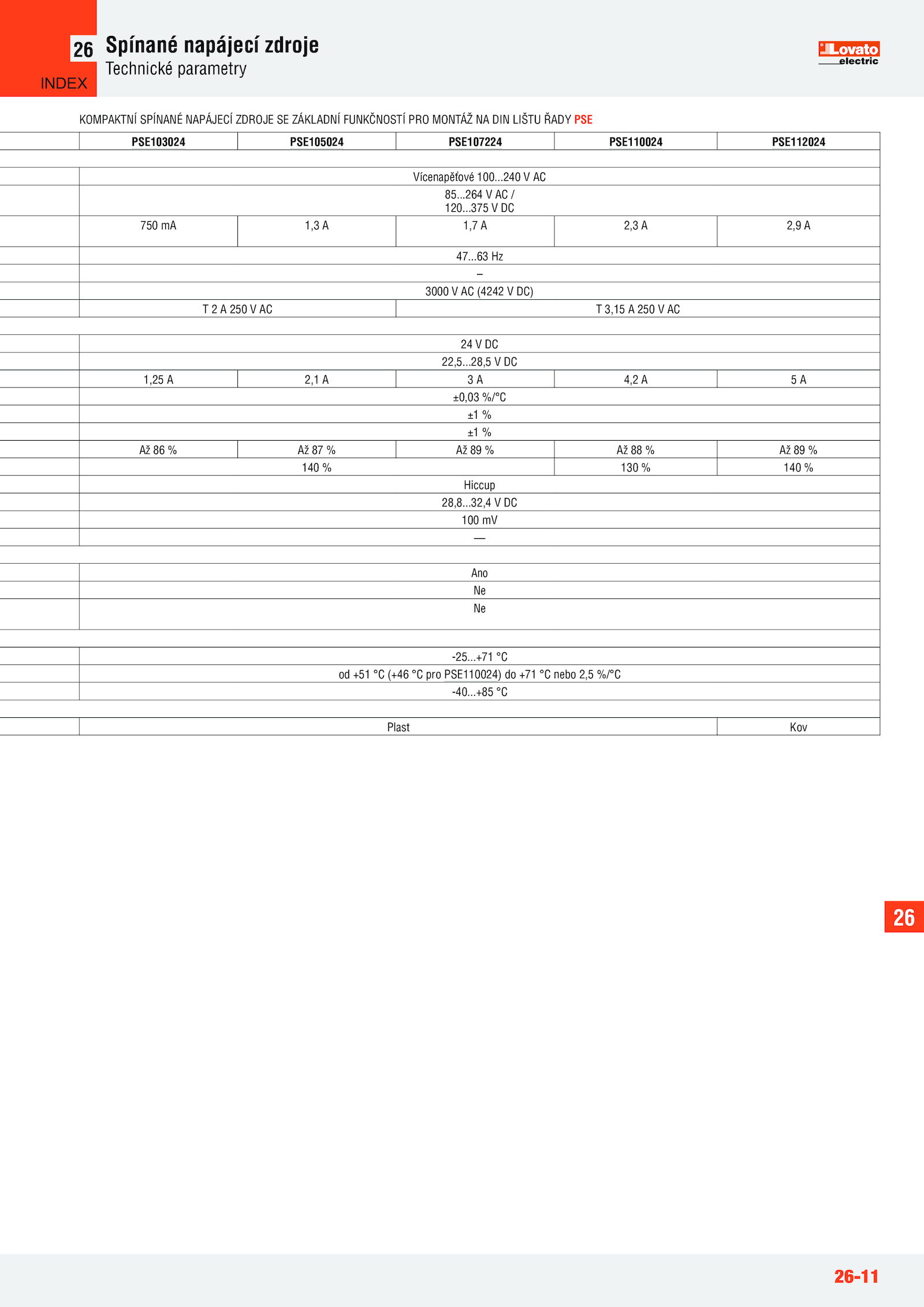 od +51 (+46 pro PSE110024) +71 nebo 2,5 %/°C