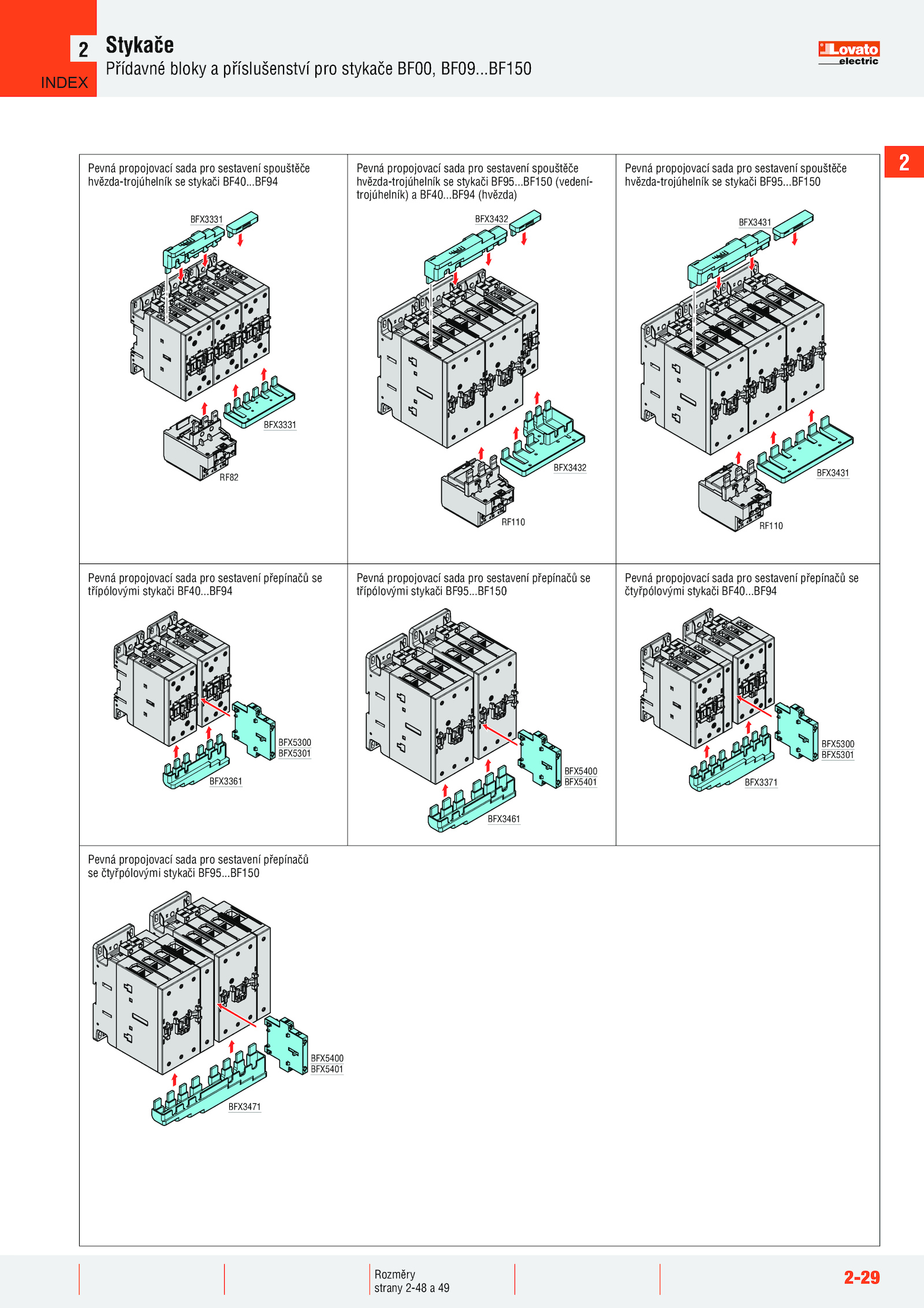 ...BF150 Pevná propojovací sada pro sestavení přepínačů se čtyřpólovými stykači BF40...BF150 INDEX .BF94 Pevná propojovací sada pro sestavení přepínačů se třípólovými stykači BF95..BF150 2 Rozměry strany 2-48 49 BFX3331 BFX3331 RF82 BFX3431 BFX3431 RF110 BFX5300 BFX5301 BFX3361 BFX5400 BFX5401 BFX3461 BFX5300 BFX5301 BFX3371 Pevná propojovací sada pro sestavení spouštěče hvězda-trojúhelník stykači BF40.BF94 BFX5400 BFX5401 BFX3471 Pevná propojovací sada pro sestavení přepínačů se čtyřpólovými stykači BF95..BF94 BFX3432 BFX3432 RF110 Pevná propojovací sada pro sestavení spouštěče hvězda-trojúhelník stykači BF95..2 2-29 Stykače Přídavné bloky příslušenství pro stykače BF00, BF09......BF150 Pevná propojovací sada pro sestavení přepínačů se třípólovými stykači BF40......BF94 (hvězda) Pevná propojovací sada pro sestavení spouštěče hvězda-trojúhelník stykači BF95.BF150 (vedení- trojúhelník) BF40