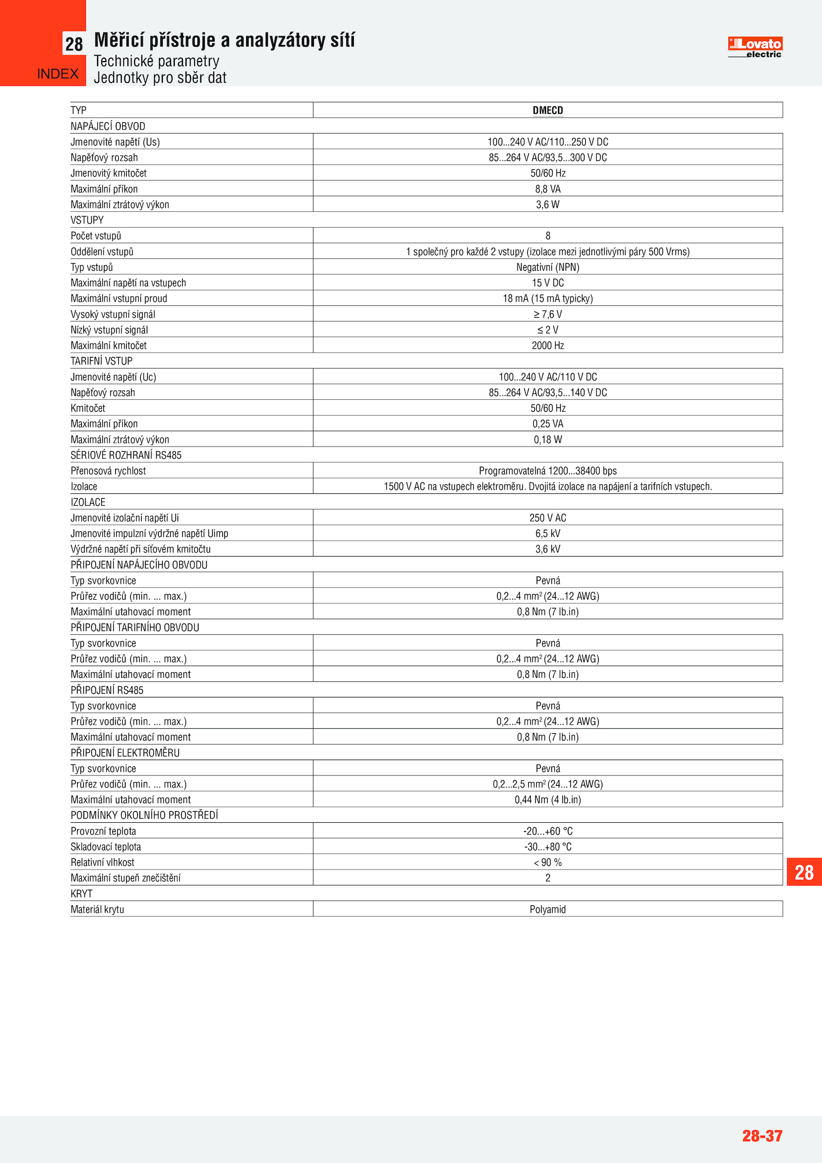 Jmenovité napětí (Us) 100. max..... . Dvojitá izolace napájení tarifních vstupech..4 mm2