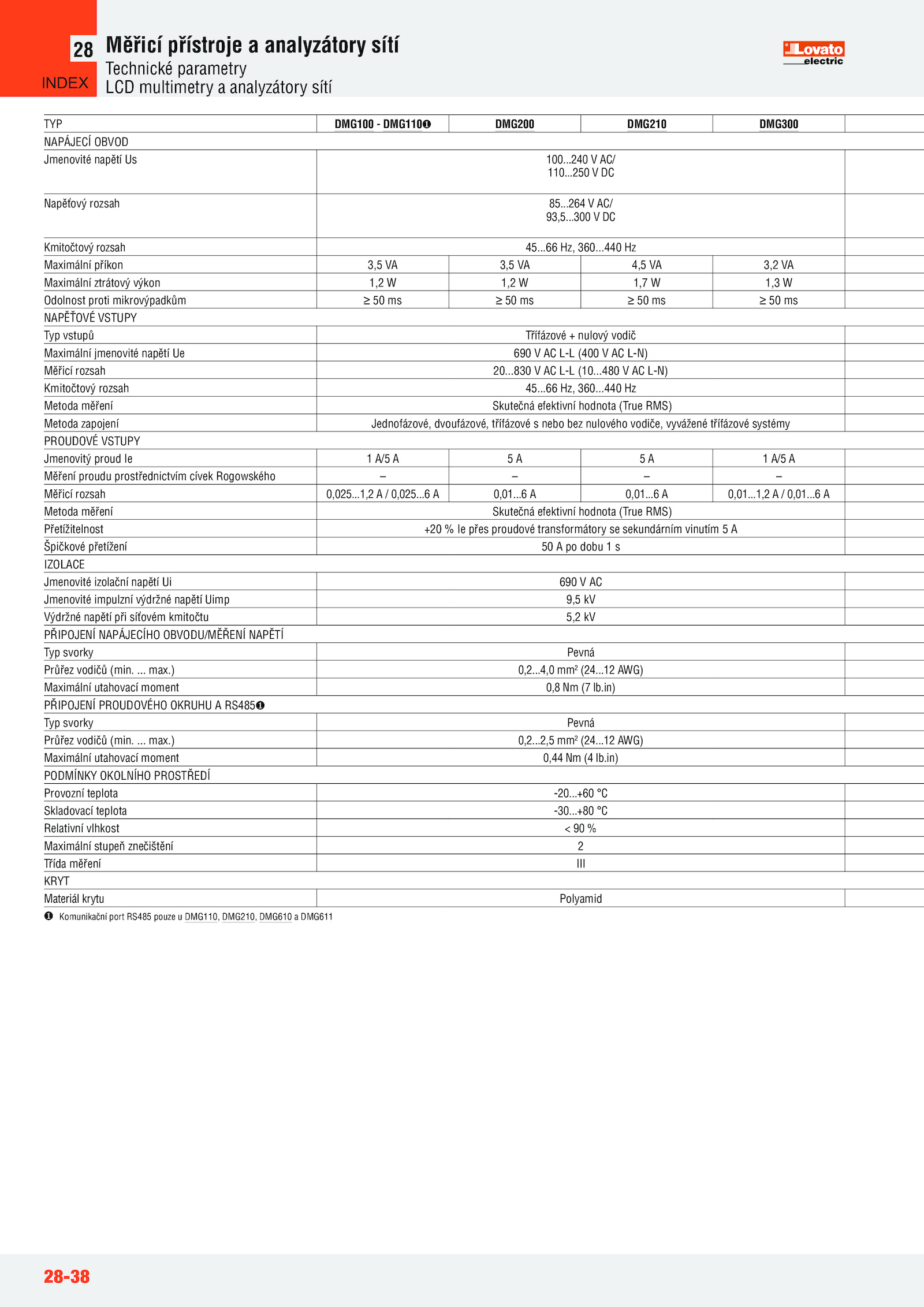 Komunikační port RS485 pouze DMG110, DMG210, DMG610 DMG611