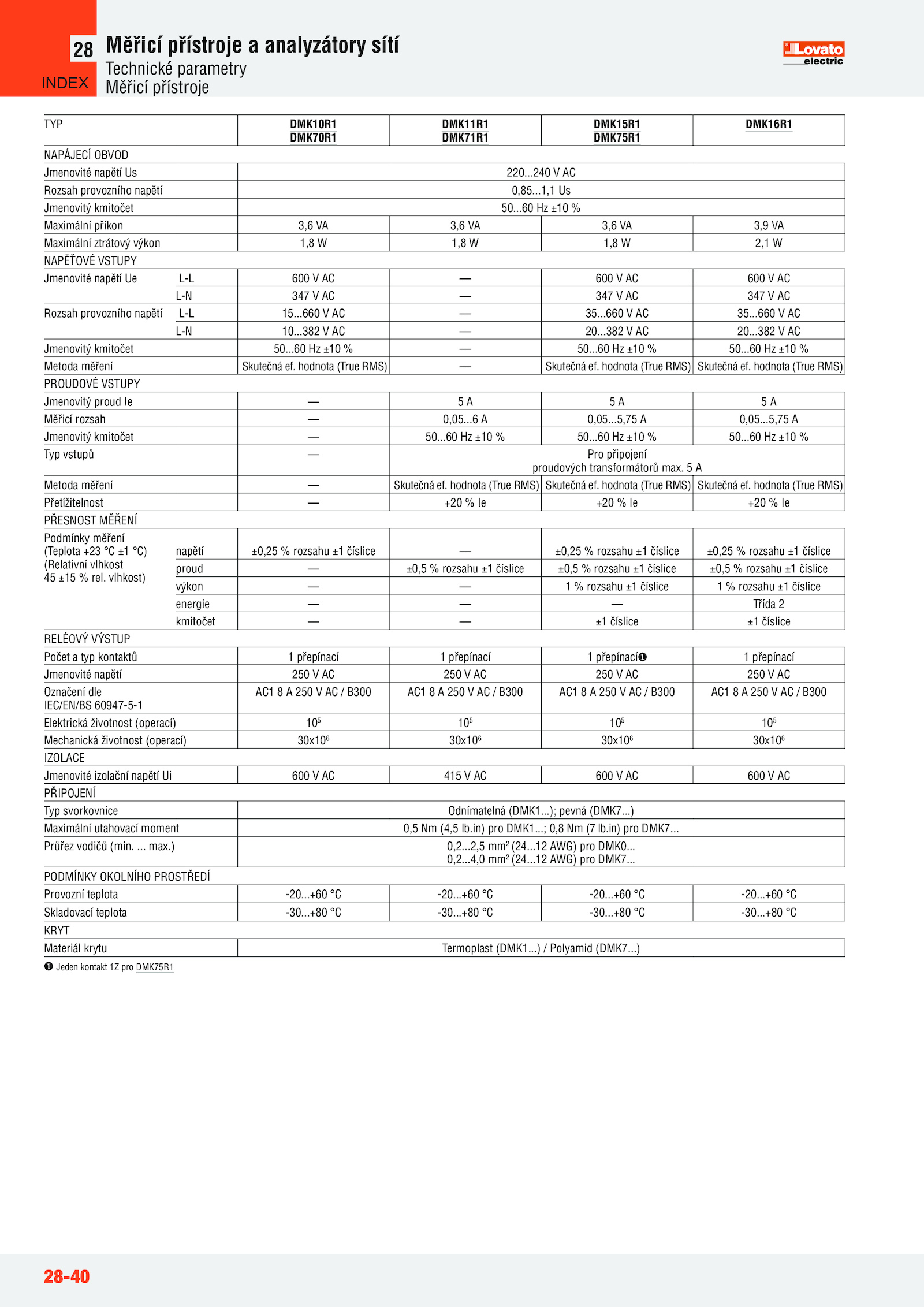 Rozsah provozního napětí 0,85..60 ±10 50......660 35.. hodnota (True RMS) Skutečná ef....4,0 mm2