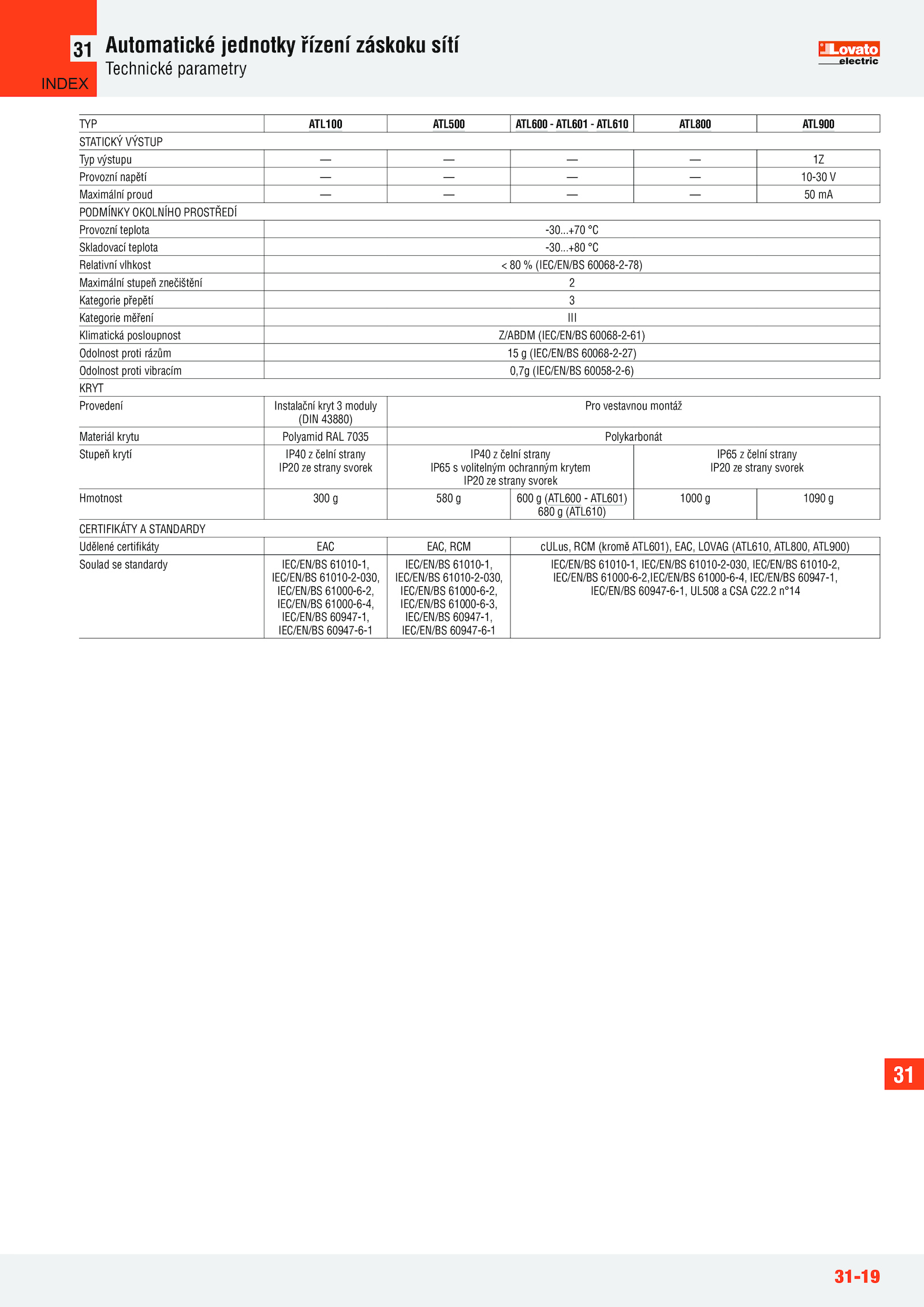 Udělené certifikáty EAC EAC, RCM cULus, RCM (kromě ATL601), EAC, LOVAG (ATL610, ATL800, ATL900)