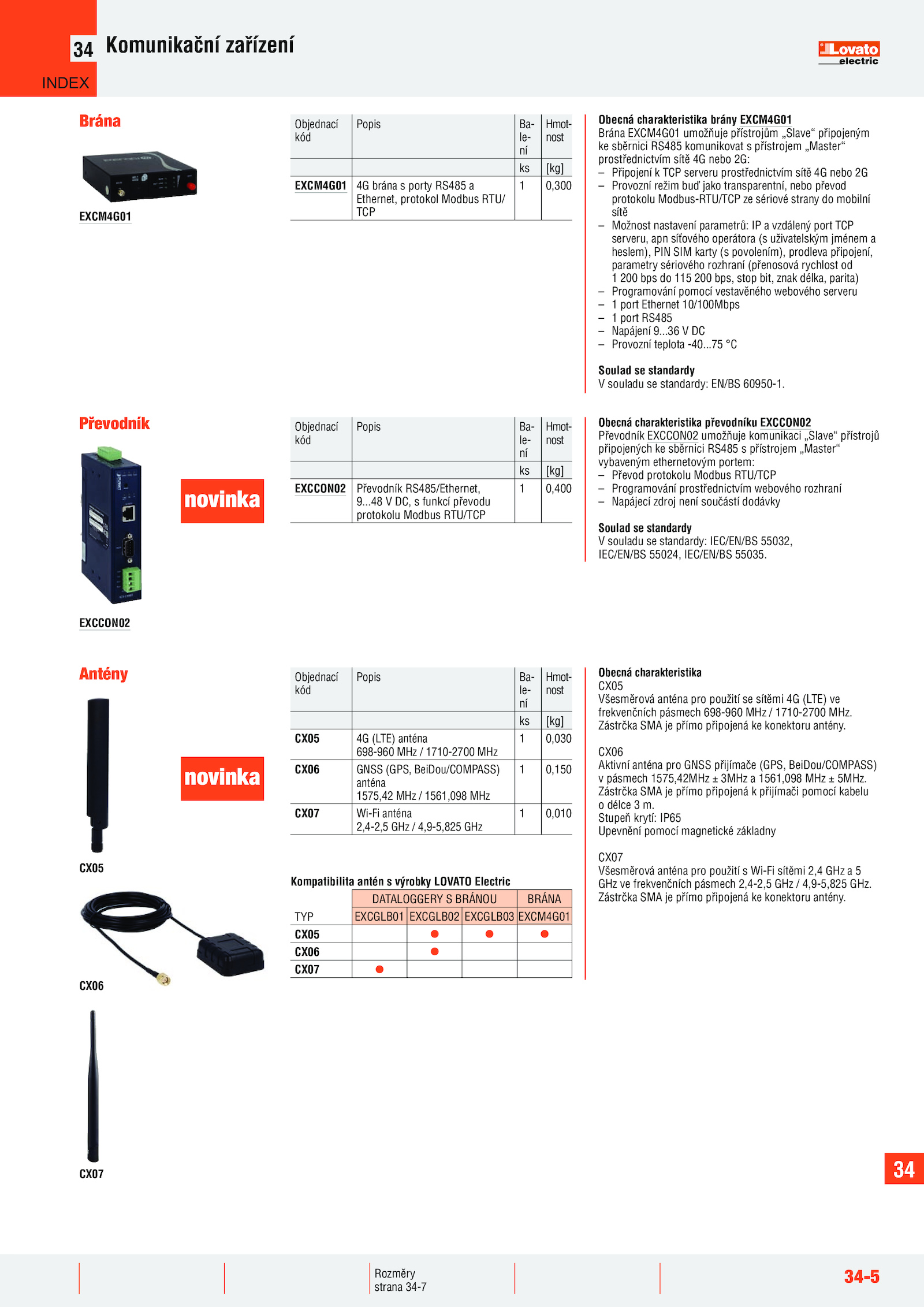 Kompatibilita antén výrobky LOVATO Electric