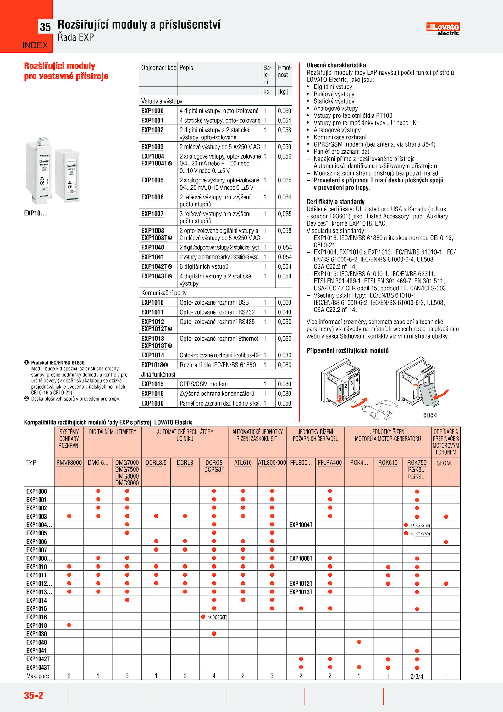Kompatibilita rozšiřujících modulů řady EXP přístroji LOVATO Electric
