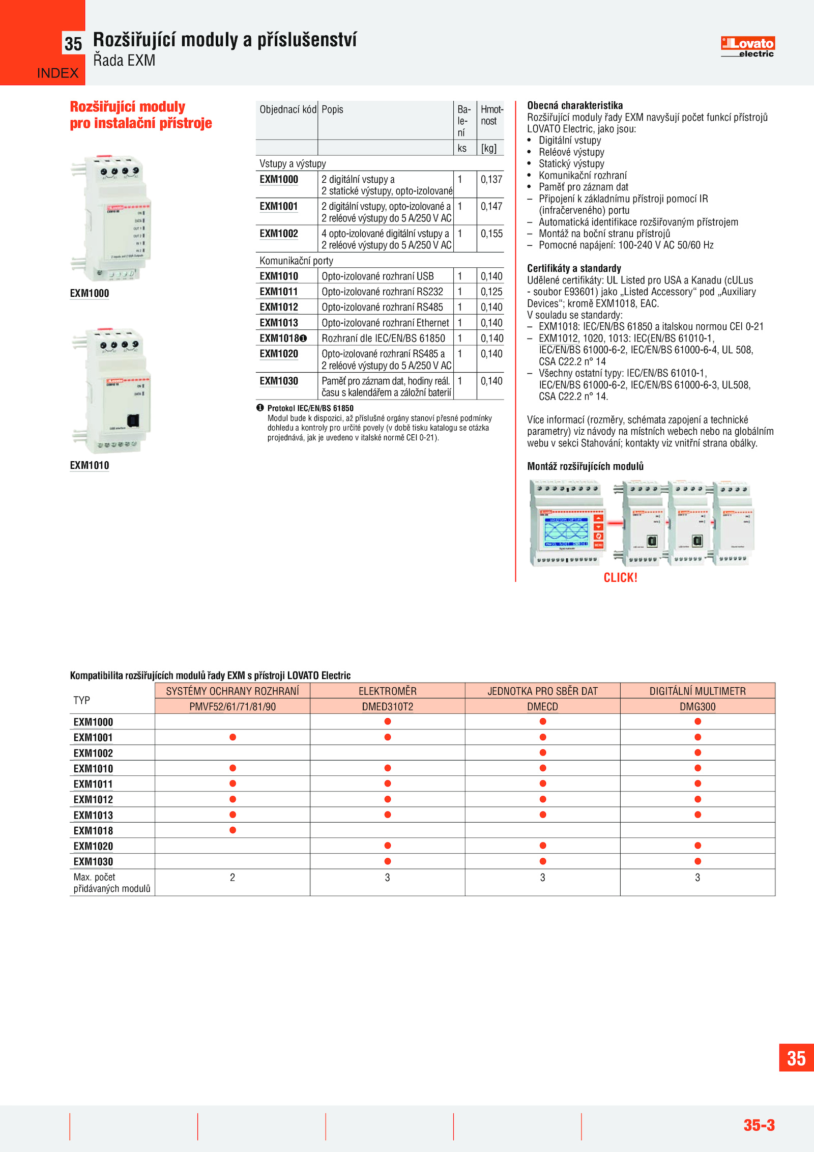 Kompatibilita rozšiřujících modulů řady EXM přístroji LOVATO Electric
