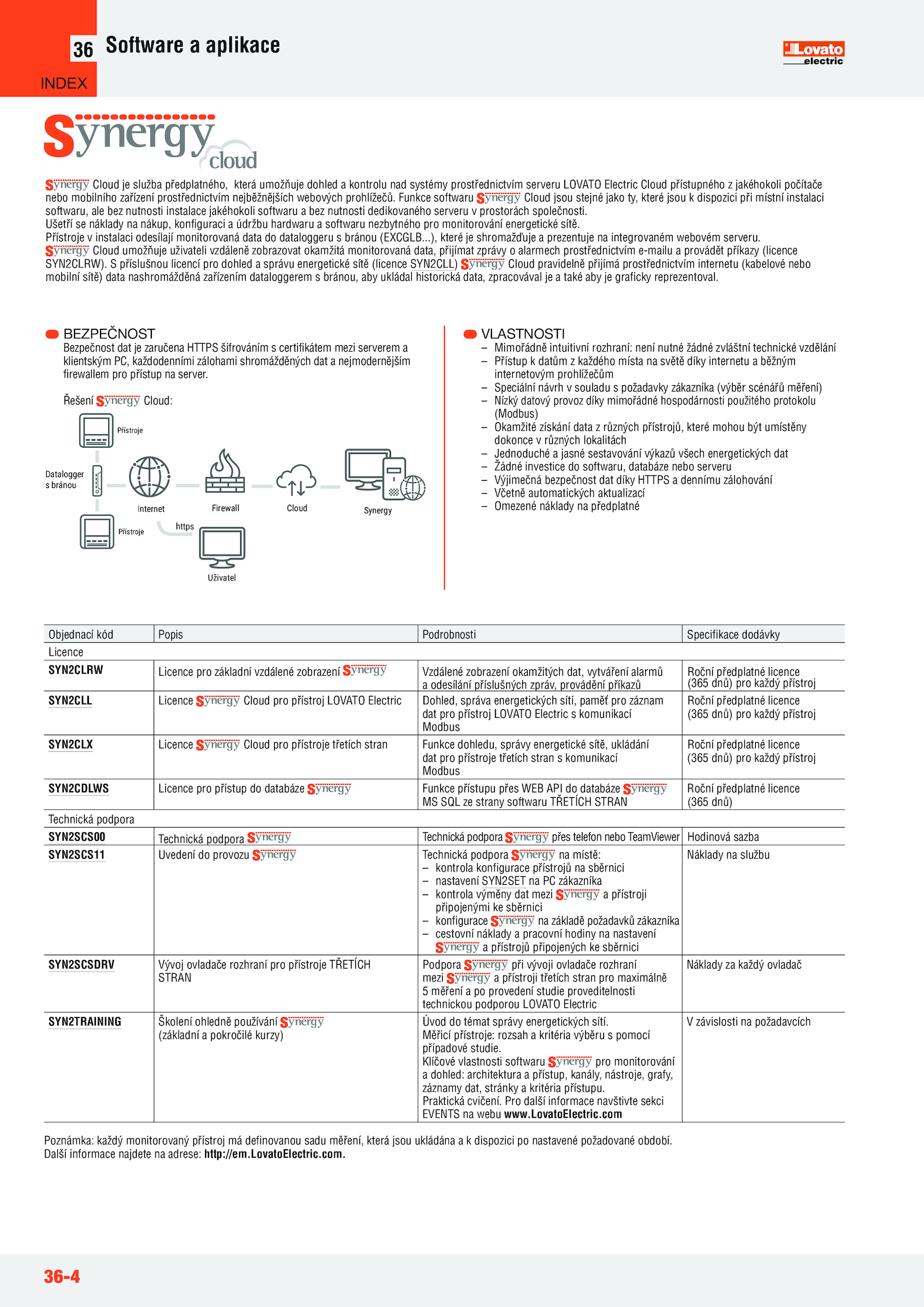 SYN2CLL Licence Cloud pro přístroj LOVATO Electric Dohled, správa energetických sítí, paměť pro záznam Roční předplatné licence