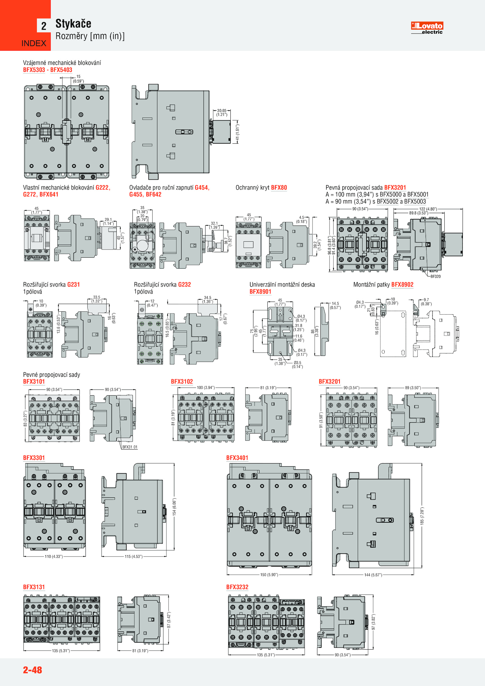 54”) (3.65 (1.77”) 31.77”) 4.26”) 38.77”) 29.2-48 Stykače Rozměry [mm (in)] 2 41 (1.59”) Vzájemné mechanické blokování BFX5303 BFX5403 G222-G272 montato BF09A 45 (1.63”) 9.17”) 16 (0.67”) 16.7 (0.82”) 135 (5.67”) 185 (7.33”) 115 (4.5 (0.61”) 30.54”) 83 (3.79”) Ovladače pro ruční zapnutí G454, G455, BF642 45 (1.27”) BFX31 01 Pevné propojovací sady BFX3101 35 (1.77”) 75 (2.42”) BFX3131 97 (3.8 (3.47”) 34.83”) Montážní patky BFX8902 Pevná propojovací sada BFX3201 A 100 (3,94”) BFX5000 BFX5001 A (3,54”) BFX5002 BFX5003 BF320 89.80”) 90 (3.17”) Ø4.21”) 15 (0.94”) (3.18”) 39.2 (1.46”) 35 (1.57”) 45 (1.5 (1.06”) BFX3301 150 (5.8 (3.14”) Univerzální montážní deska BFX8901 BFX89 02 10 (0.25”) 11.53”) 122 (4.53”) Rozšiřující svorka G231 1pólová 12 (0.95”) 86 (3.53”) 154 (6.5 (0.65”) Rozšiřující svorka G232 1pólová 45 (1.4 (3.81”) 91.54”) Ochranný kryt BFX80 G231 montato BF09A BF16A 10 (0.50”) 91 (3.14”) 40 (1.52”) 20 (0.31”) (3.5 (0.90”) 144 (5.19”) 87 (3.1 (1.28”) BFX3401 135 (5.57”) Vlastní mechanické blokování G222, G272, BFX641 90 (3.58”) BFX3201 110 (4.54”) 96.7 (1.5 (0.36”) 17 (0.32”) 16 (0.31”) (3.54”) (3.19”) 81 (3.6 (0.17”) Ø3.1 (1.38”) Ø4.5 (1.60”) 100 (3.63”) 13.39”) Ø4.19”) BFX3102 90 (3.6 (0.38”) 14.38”) 21 (0.3 (0.3 (0.38”) 32.54”) BFX3232 INDEX .3 (0.39”) 33.8 (1