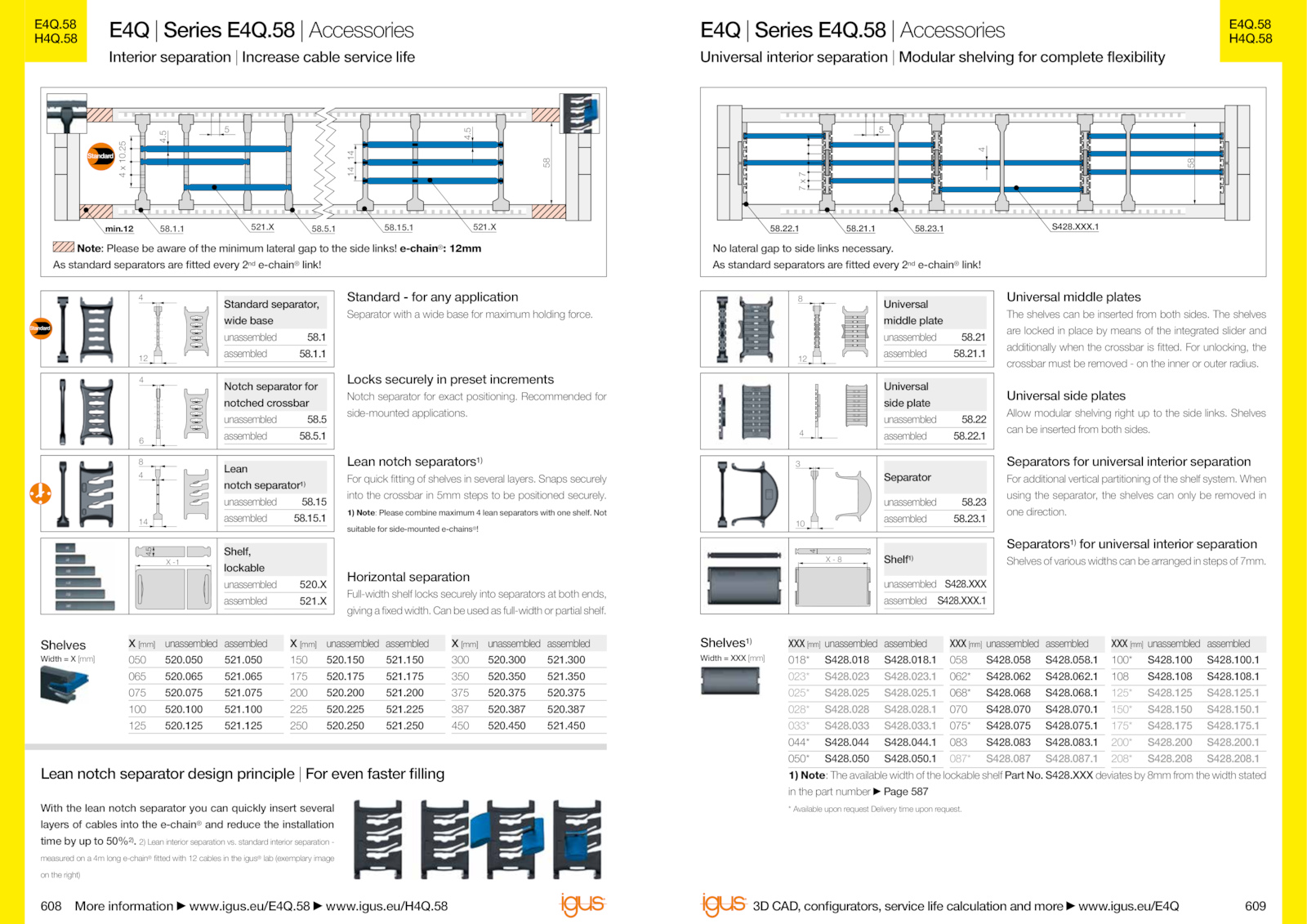 1) Note: Please combine maximum lean separators with one shelf.150 521.XXX.58 Accessories