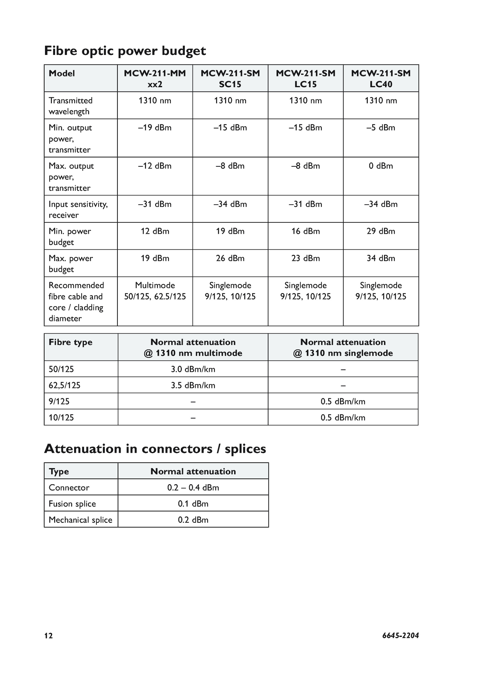 Fibre optic power budget