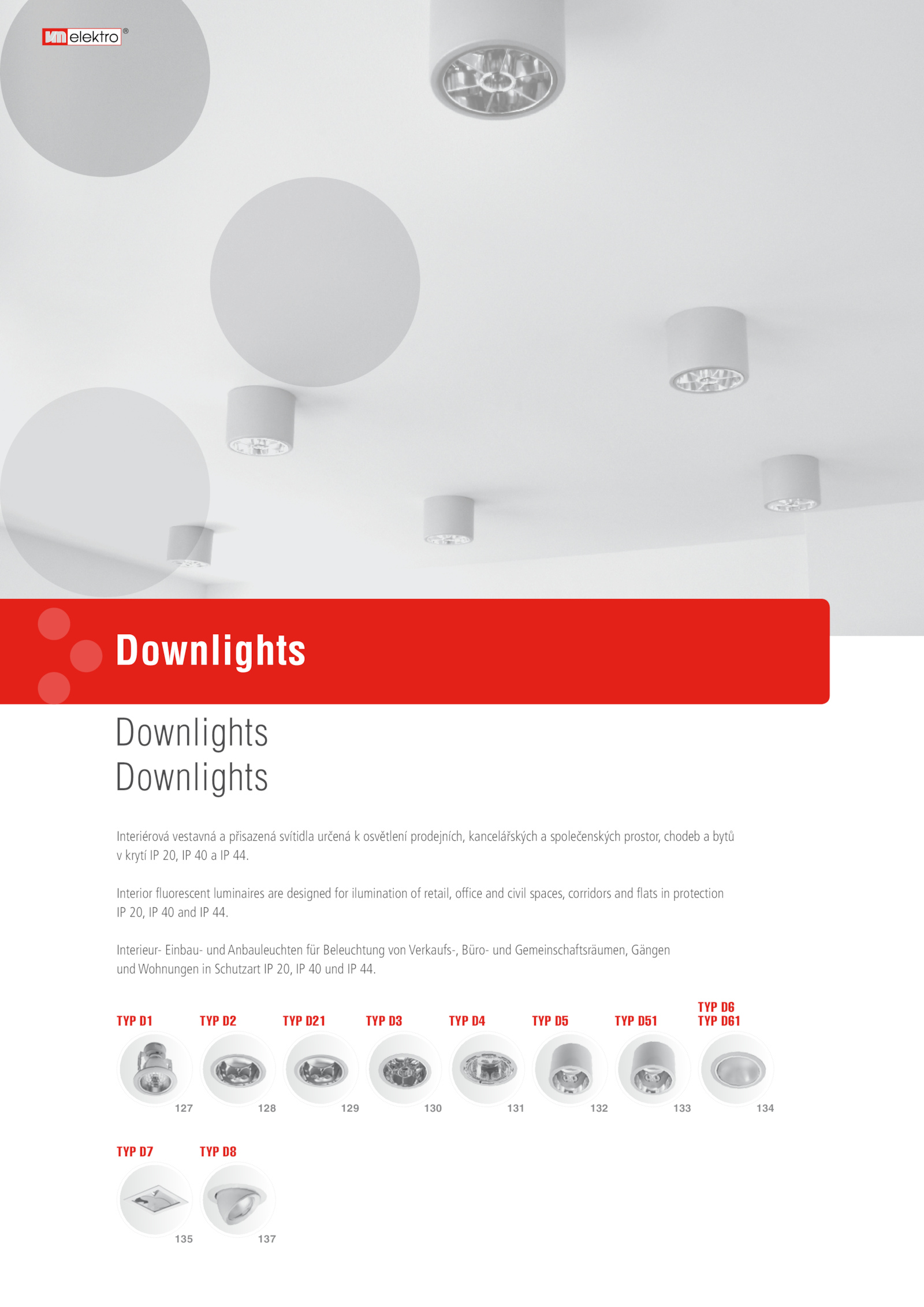 und Wohnungen Schutzart 20, und 44.Interiérová vestavná přisazená svítidla určená osvětlení prodejních, kancelářských společenských prostor, chodeb bytů
